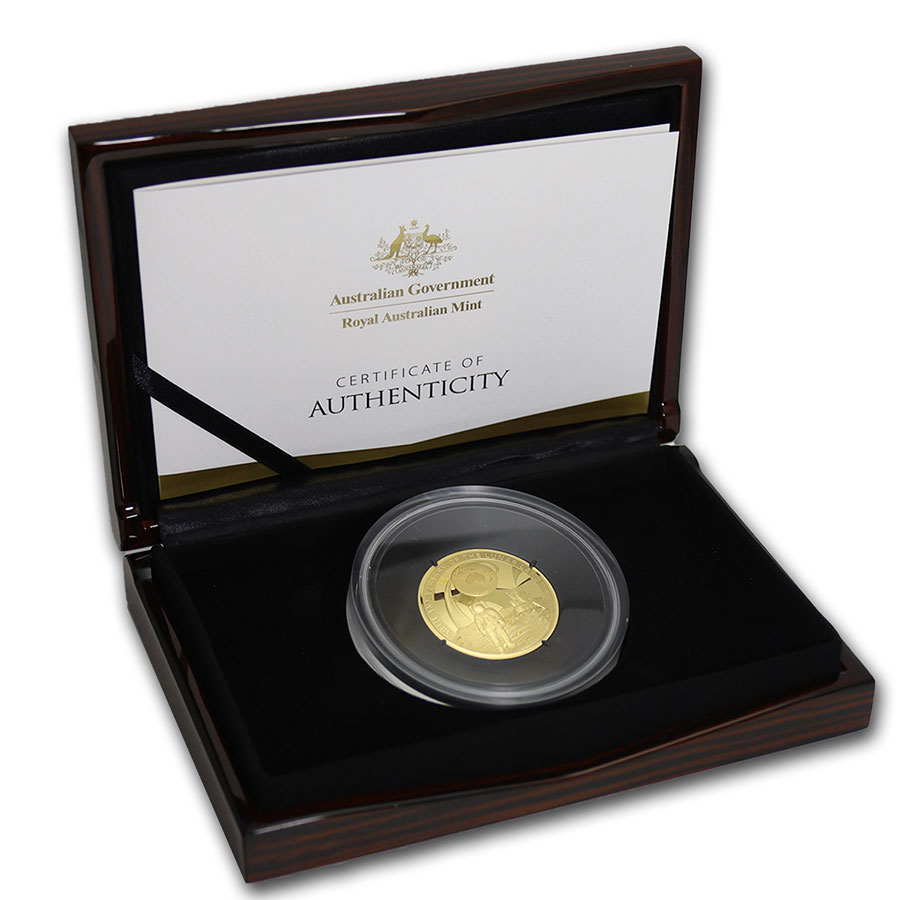 This coin is sold out from the Mint internationally! Previous 1 ounce Gold Domed coins from Royal Australian Mint have quickly sold out from the Mint, some even in the first few weeks of the release! Now is your chance to own an extremely limited mintage, beautiful .9999 fine Gold coin with a Proof finish. The coin is elegantly packaged in a box that displays both the coin and the certificate, and also included is a moon-themed outer box.