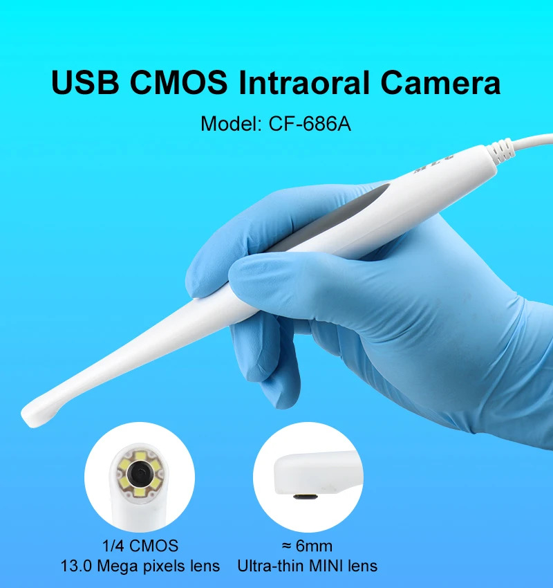 Dental Intraoral Camera Sensor 1/4 CMOS 13MP with 6 LED Light Oral Examination Camera Endoscope Automatic Focusing Dental Tools