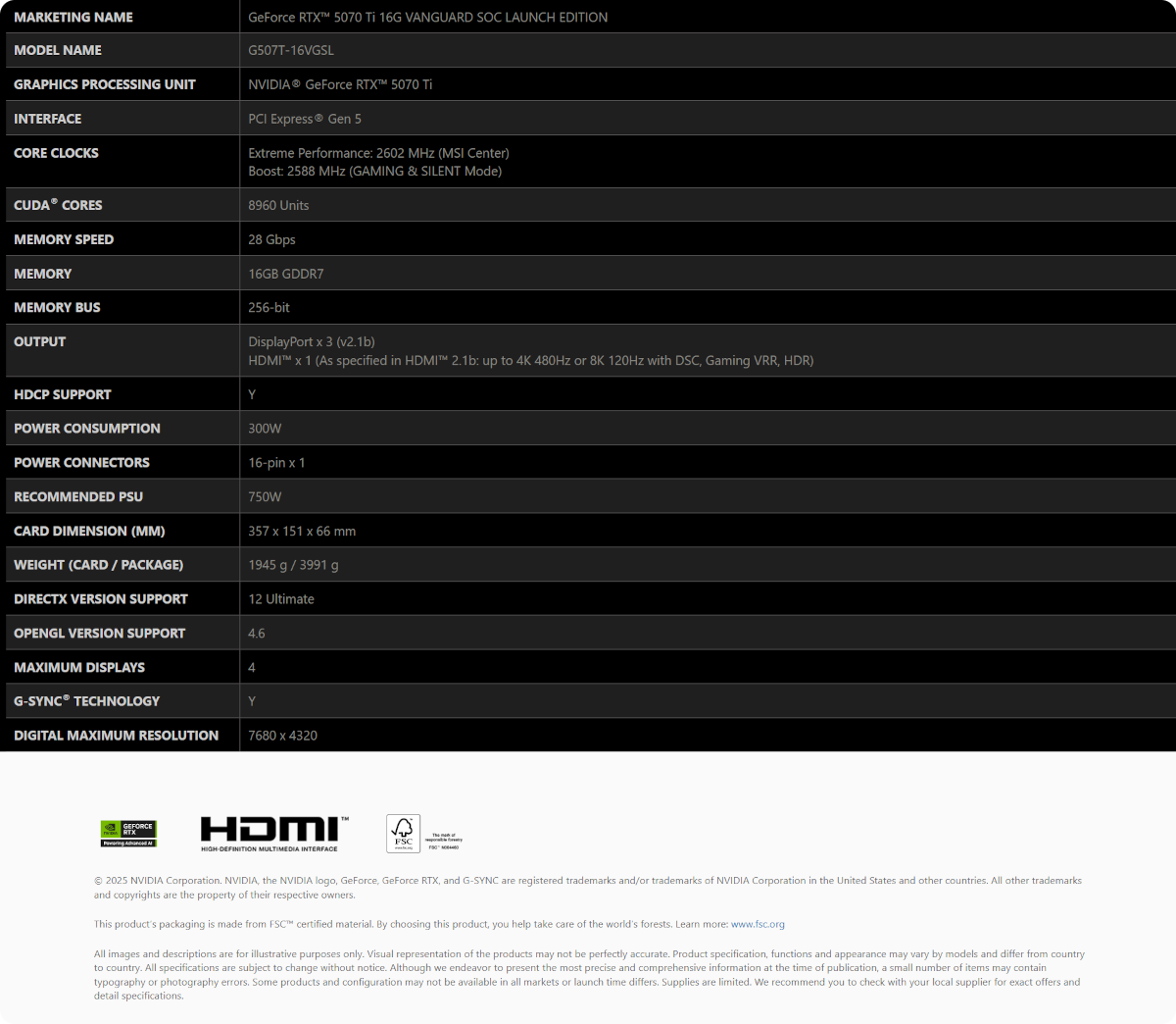 MSI GeForce RTX 5070 Ti 16G VANGUARD SOC LAUNCH EDITION GDDR7 RGB Graphics Card