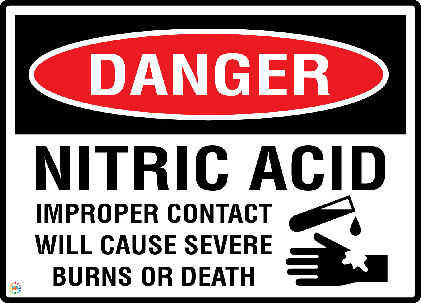 Promote chemical hazard awareness and protect personnel from life-threatening exposure with the "Danger Nitric Acid Improper Contact Will Cause Severe Burns Or Death" Warning Sign/Sticker (DSN42). Nitric acid is a highly corrosive and reactive substance commonly used in laboratories, metal processing, fertiliser production, and chemical manufacturing. Even small amounts of contact with skin, eyes, or lungs can cause severe burns, respiratory damage, or death. This sign/sticker serves as a powerful visual warning to deter unauthorised access, remind trained personnel of proper handling protocols, and comply with occupational health and safety regulations. Its bold design and precise message ensure maximum visibility in both routine and emergency scenarios.
