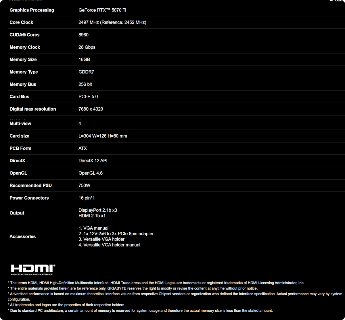 Gigabyte GeForce RTX 5070 Ti WINDFORCE OC SFF 16G GDDR7 Graphics Video Card