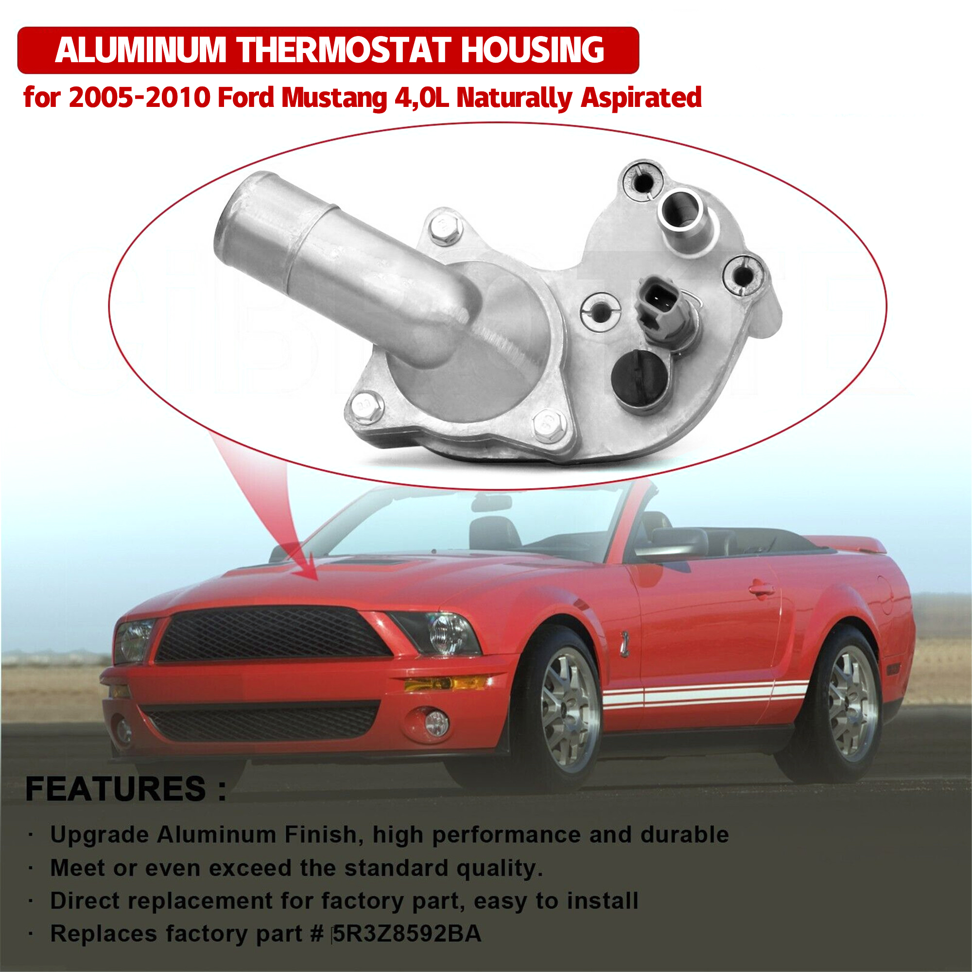 Thermostat&Aluminum Housing&Installation Kit For 05-10 Ford Mustang 5R3Z-8592-BA