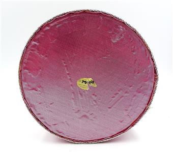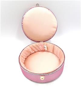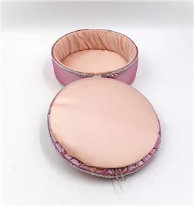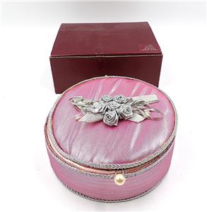 NEW OLD STOCK - PINK & SILVER TRIM COTTON FABRIC ROUND TRINKET BOX