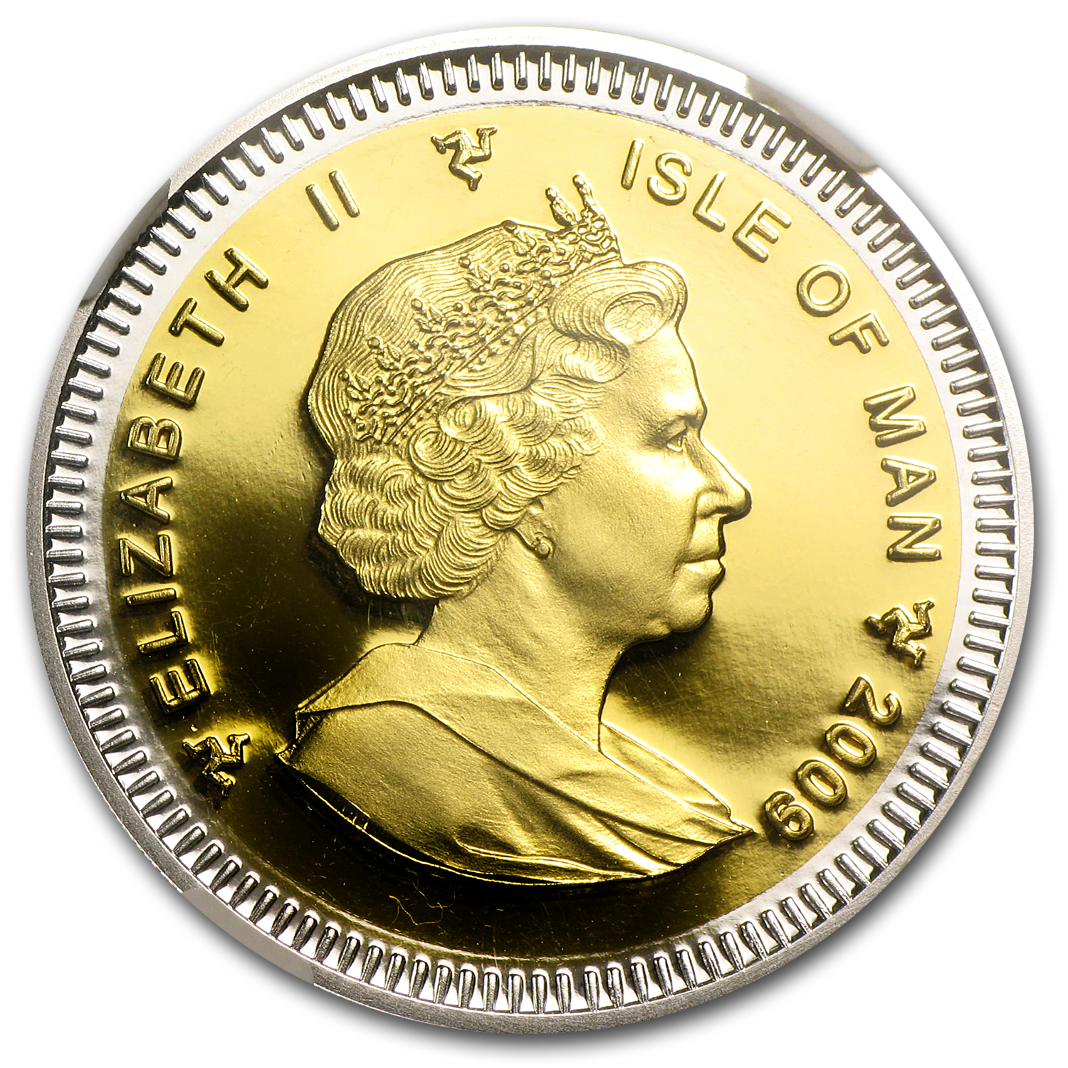 This Gold noble coin beautifully depicts the history of the Isle of Man. Add this 2009 Isle of Man Bi-Metallic Noble 15th anniversary coin to your cart today!