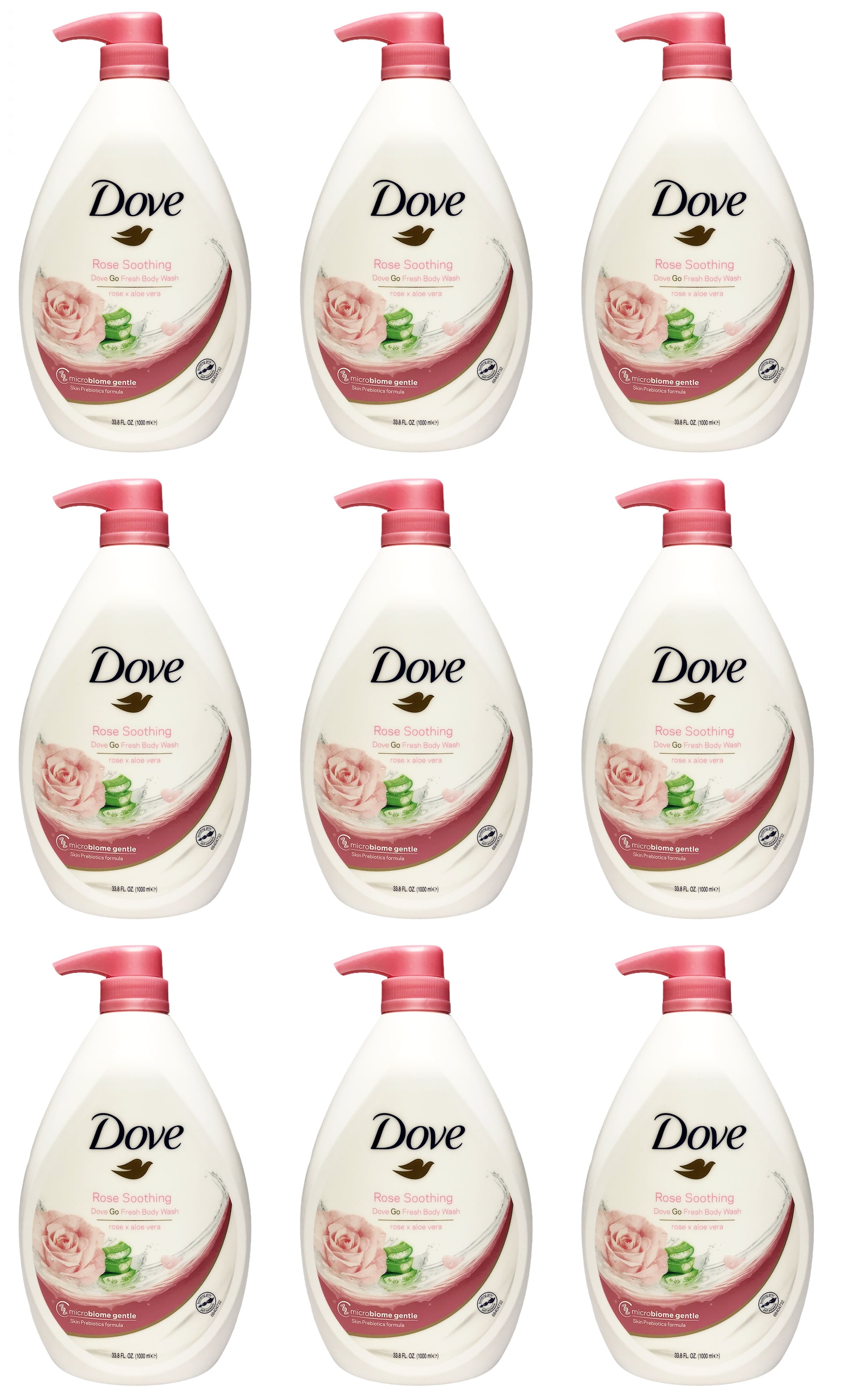 12 Dove Body Wash Pump Rose Aloe Vera 33.8 oz- Microbiome Gentle Formula- Bulk