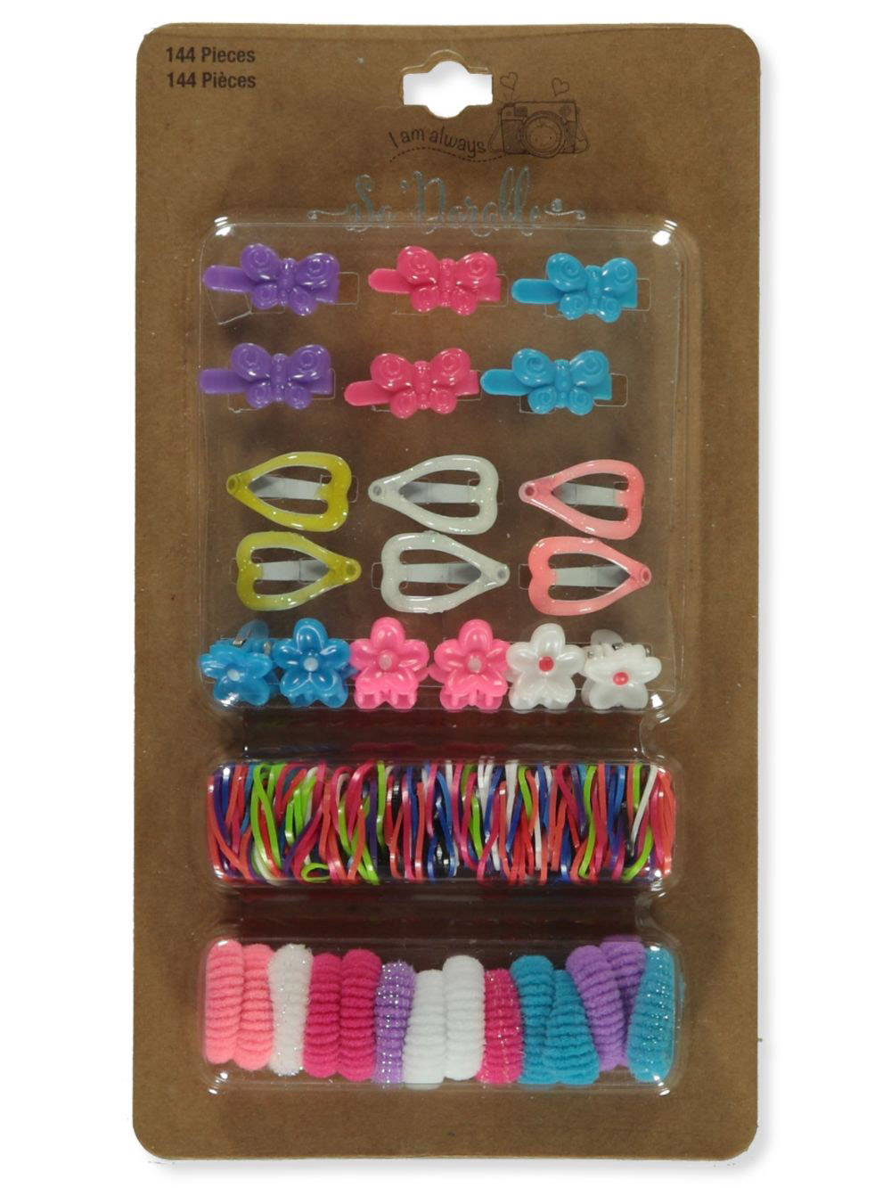 So Dorable Girls' 144-Piece Hair Accessories Pack Clips Bands Ties - pink/multi, one size