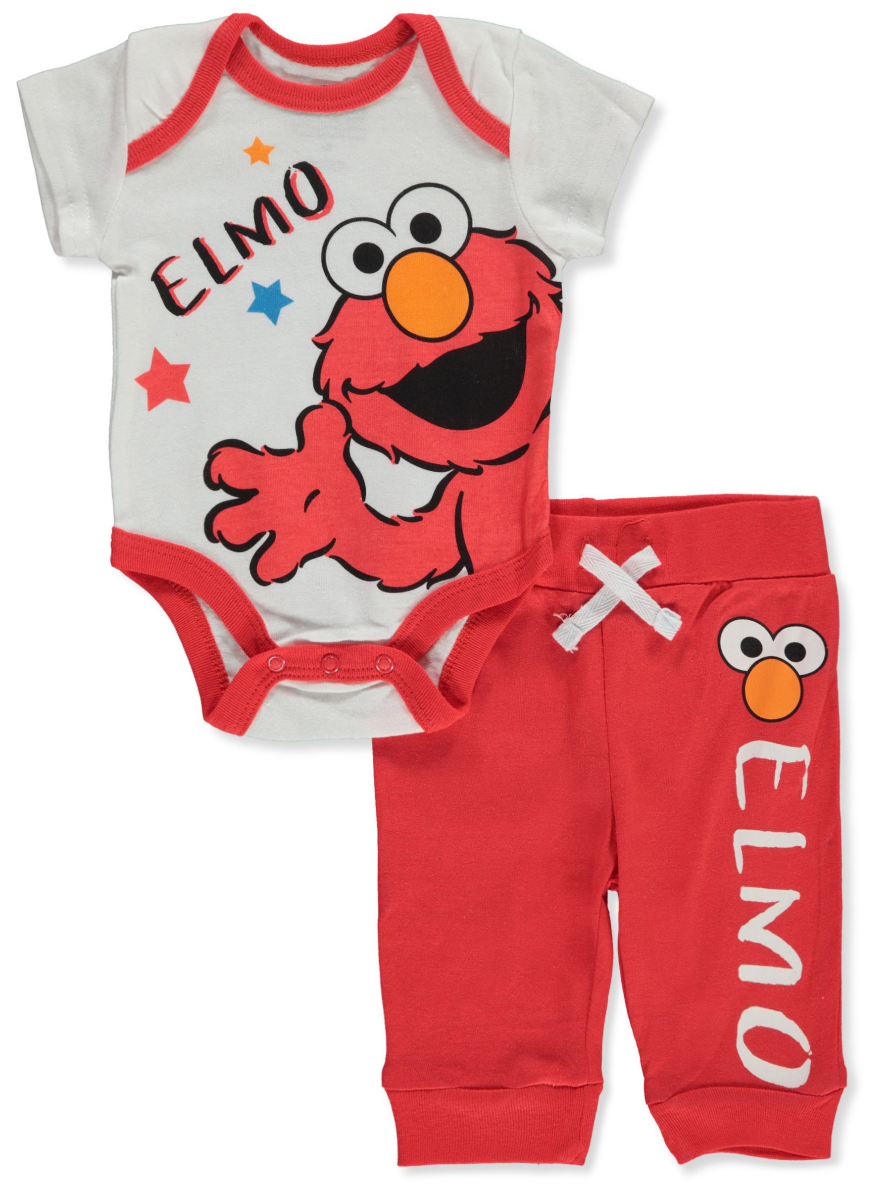 Baby will love the colorful style of this outfit starring their favorite Monster from Sesame Street! Sesame Street outfit Bodysuit with graphic applique, ribbed trim, and easy-change snaps (100% cotton) Joggers with elastic waistband (60% cotton, 40% polyester) Machine wash cold Made in China
