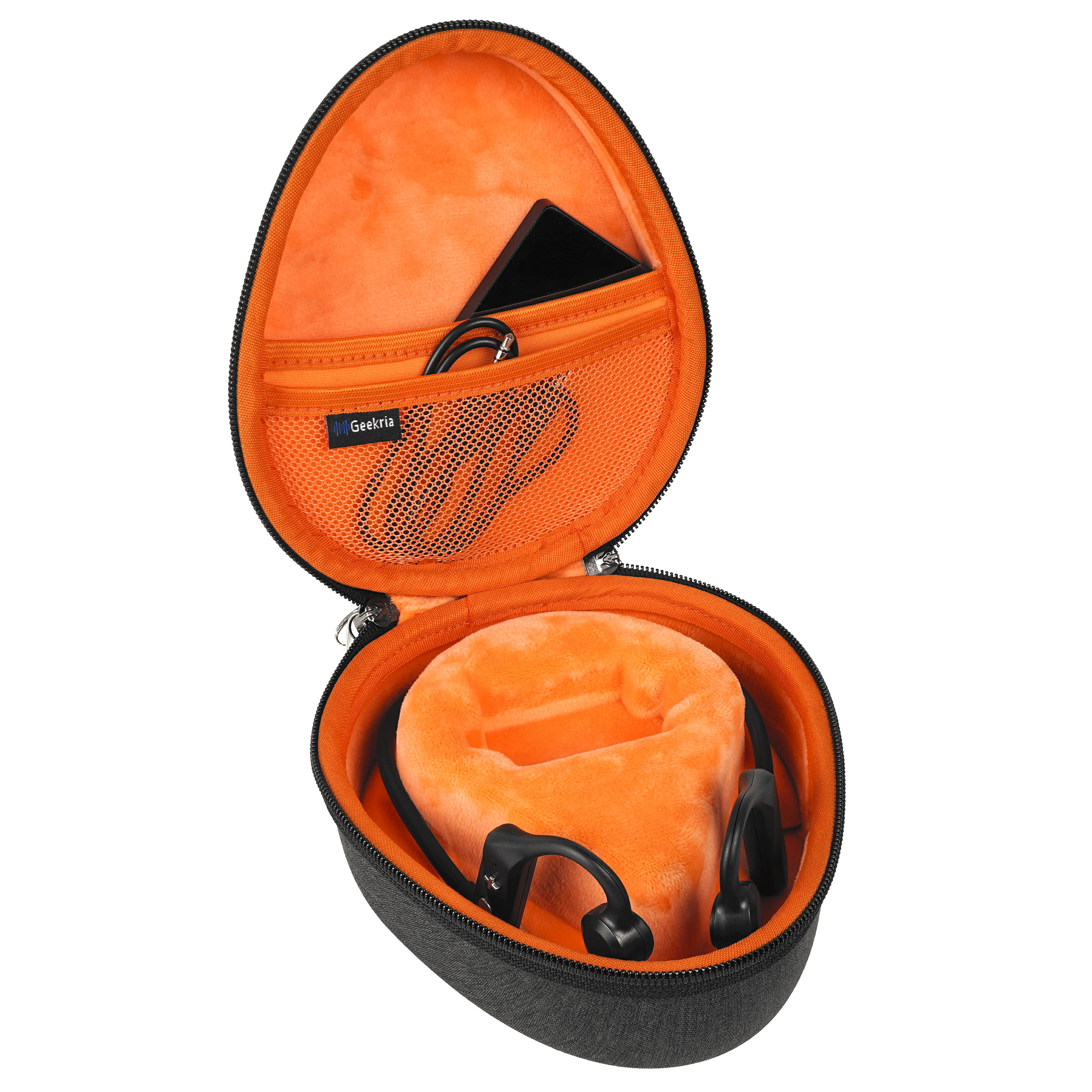 Geekria Shield Headphones Case for Bone Conduction Headphones, Replacement Hard Shell Travel Carrying Bag with Cable Storage, Compatible with Rumatas X6 max, Wigfar V18 and More (Dark Grey)