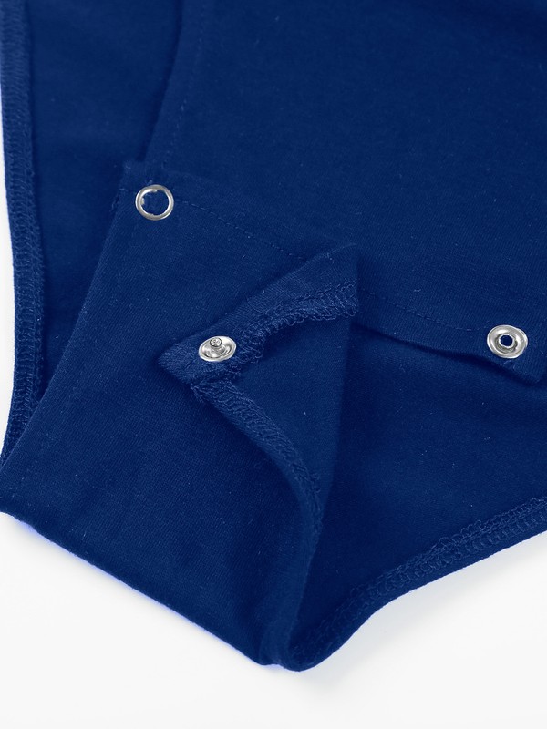 Short sleeve bodysuit, crew neck, press button closure at the crotch, easy to put on and take off.