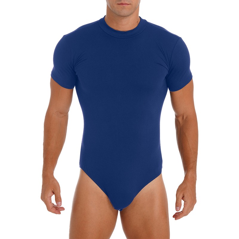 UK Mens Short Sleeve Bodysuit Solid Color Press Button Leotard T-Shirt Jumpsuit