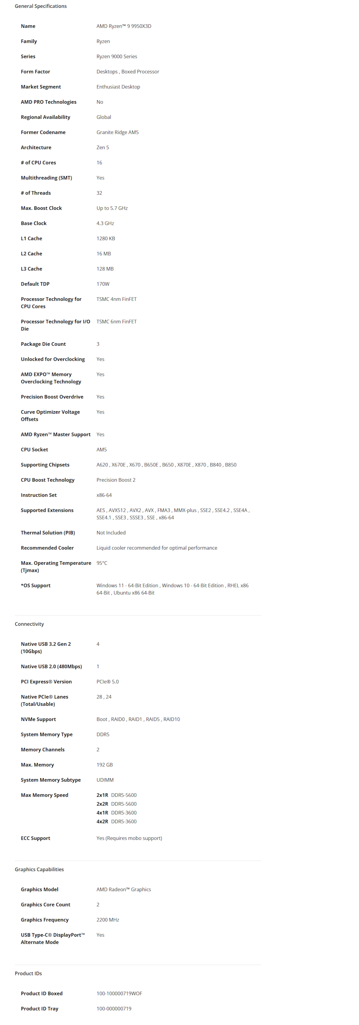 AMD Ryzen 9 9950X3D 16 Cores 32 Threads AM5 5.7GHz CPU Desktop Processsor