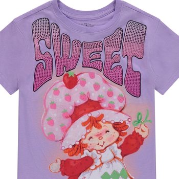 - Sparkling Strawberry Shortcake Design: This clothing set features a playful Strawberry Shortcake graphic on the T-shirt, adorned with rhinestones that add a touch of sparkle and make the design pop.