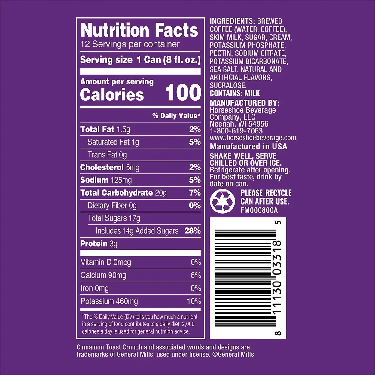 - Made with Arabica beans, real skim milk, and sugar
