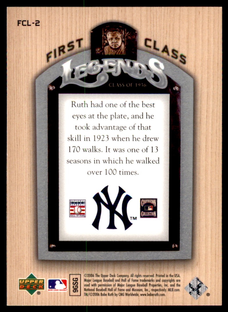 | 2006 Upper Deck First Class Legends Babe Ruth New York Yankees #FCL-2 | ||||||||||||||||