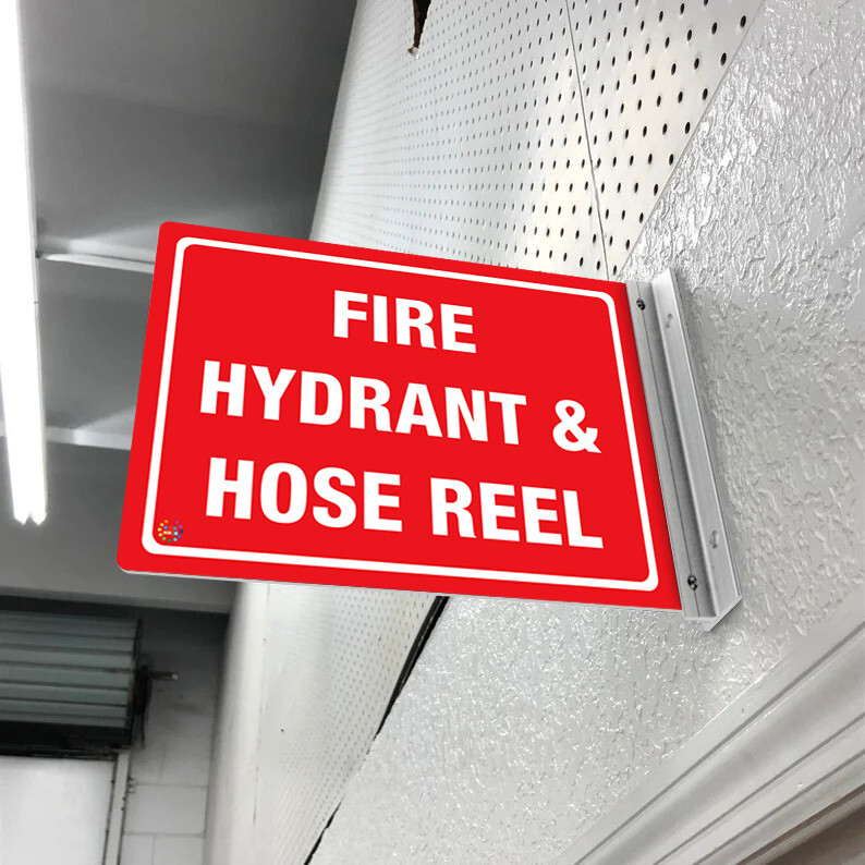 Clearly indicate the location of essential fire safety equipment with our Fire Hydrant & Hose Reel Double Sided Off Wall Sign (OFF29). This sign is vital for marking fire hydrants and hose reel points in workplaces, hospitals, schools, shopping centres, airports, industrial facilities, and other high-traffic environments where rapid access is critical. It ensures that staff, visitors, and emergency responders can quickly locate and operate fire hydrants and hose reels during fire emergencies, supporting immediate action and reducing potential hazards. The bold, easy-to-read text and universally recognised hydrant and hose reel symbols enhance visibility, provide rapid recognition, and promote correct and prompt use in urgent situations. Constructed from durable, weather-resistant materials, this sign maintains clarity and legibility in both indoor and outdoor conditions. The premium aluminium double-sided bracket provides long-lasting strength, corrosion resistance, and secure wall mounting. Its outward projection ensures maximum visibility from multiple directions, guaranteeing that fire hydrants and hose reels are easily seen, accessible, and ready for use whenever emergencies occur, supporting overall workplace safety and compliance with fire safety standards.HEAVY-DUTY AND WEATHER-RESISTANT: Built from strong, durable metal designed for long-term indoor and outdoor use. The solid aluminium bracket secures the Off-Wall projection firmly, preventing movement or detachment while providing clear visibility from multiple angles in corridors, hallways, and building exteriorsMULTIPLE SIZE OPTIONS: Available in 250mm x 180mm and 300mm x 225mm dimensions to accommodate a variety of placement needs. The smaller format fits compact or restricted spaces, while the larger version provides bold, highly visible identification for high-traffic areas, including offices, factories, warehouses, and public facilitiesLONG-LASTING PRINT QUALITY: Printed with professional-grade eco-solvent or latex inks designed to resist fading, abrasion, and environmental wear. Text and pictograms remain crisp and legible over time, maintaining professional appearance and compliance indoors and outdoors, even under sunlight, rain, or humiditySECURE AND SIMPLE INSTALLATION: Supplied with a strong aluminium bracket and matching screws for reliable wall mounting. The anodised aluminium finish ensures long-term corrosion resistance and structural stability, keeping the display firmly fixed in exposed outdoor, industrial, or high-moisture environmentsVISIBILITY AND SAFETY OPTIONS: Offered in standard finish for everyday readability, Class 2 reflective for high-contrast visibility under headlights or low-light conditions, and luminous version for glow-in-the-dark clarity during night hours or power outages, supporting continuous hazard communication and safety awareness