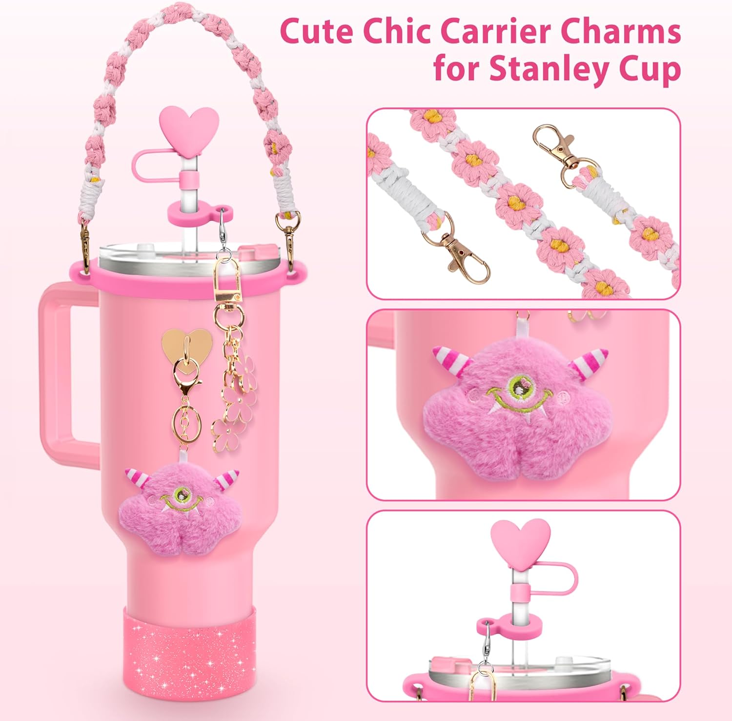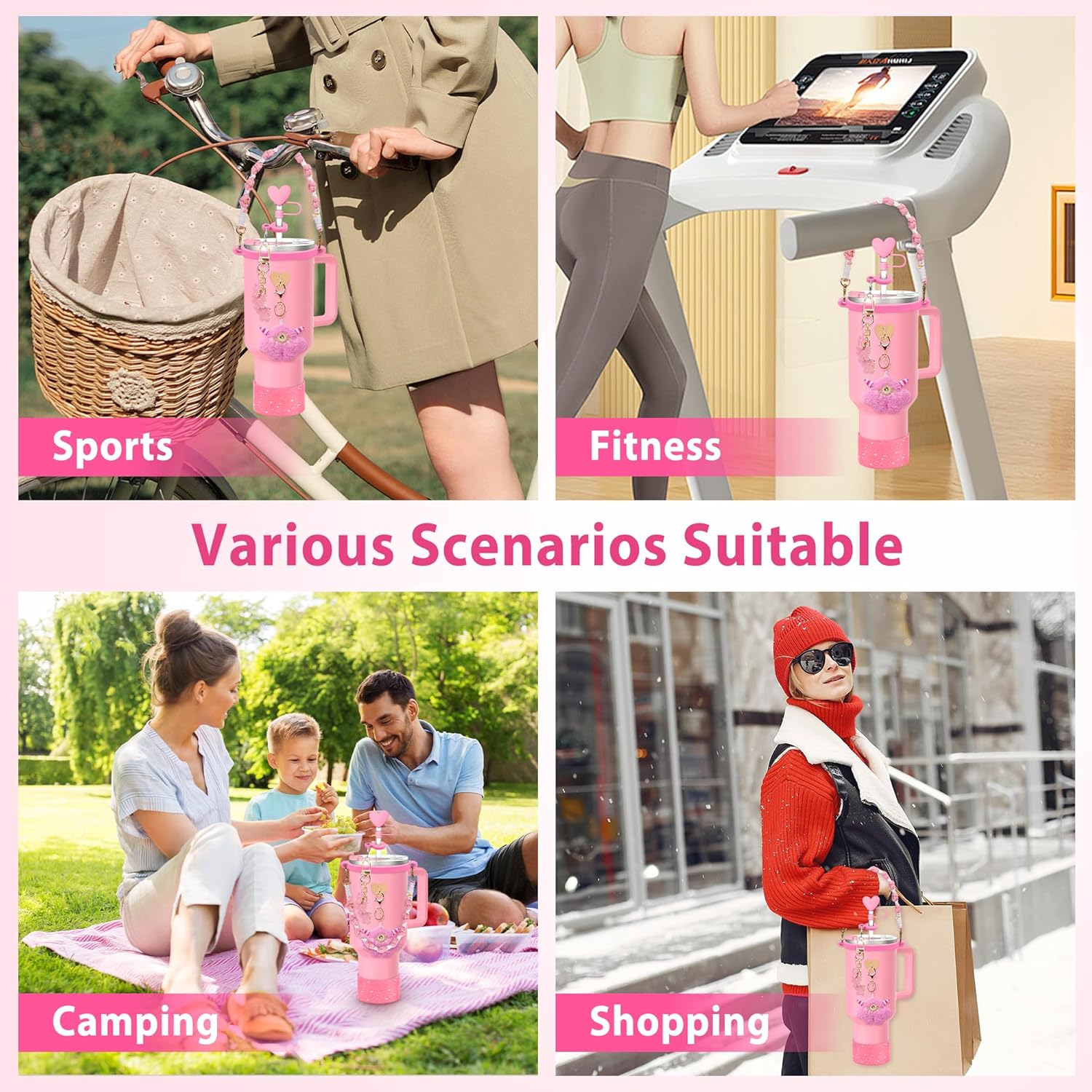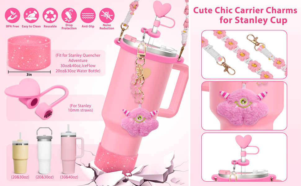 1.This tumbler accessory set is designed to fit Stanley Quencher cups (40 oz, 30 oz, and 20 oz).