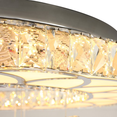 Bright and colorful lights can bring charm and warmth to your room, and light up your life. Made of premium iron, stainless steel, and crystal, this round crystal ceiling light is strong and durable. With 4 LED lights and a built-in intelligent driver, it can create bright light with great safety. It will be a great addition to your house.