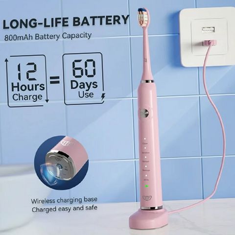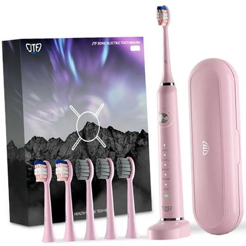 JTF Jtf-P200-Pink Sonic Electric Toothbrush For Adults With 5 Modes & 6 Brush Heads - Pink