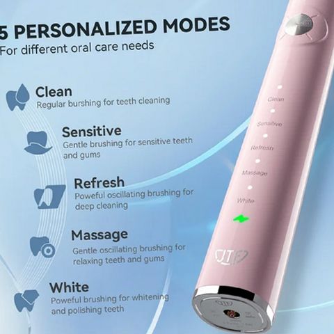 • JTF Electric Toothbrush for Adults is designed with sonic vibration, up to 40,000 strokes per minute, and dynamic cleaning. 5 personalized modes take care of your many demands and add some fun to your daily routine.