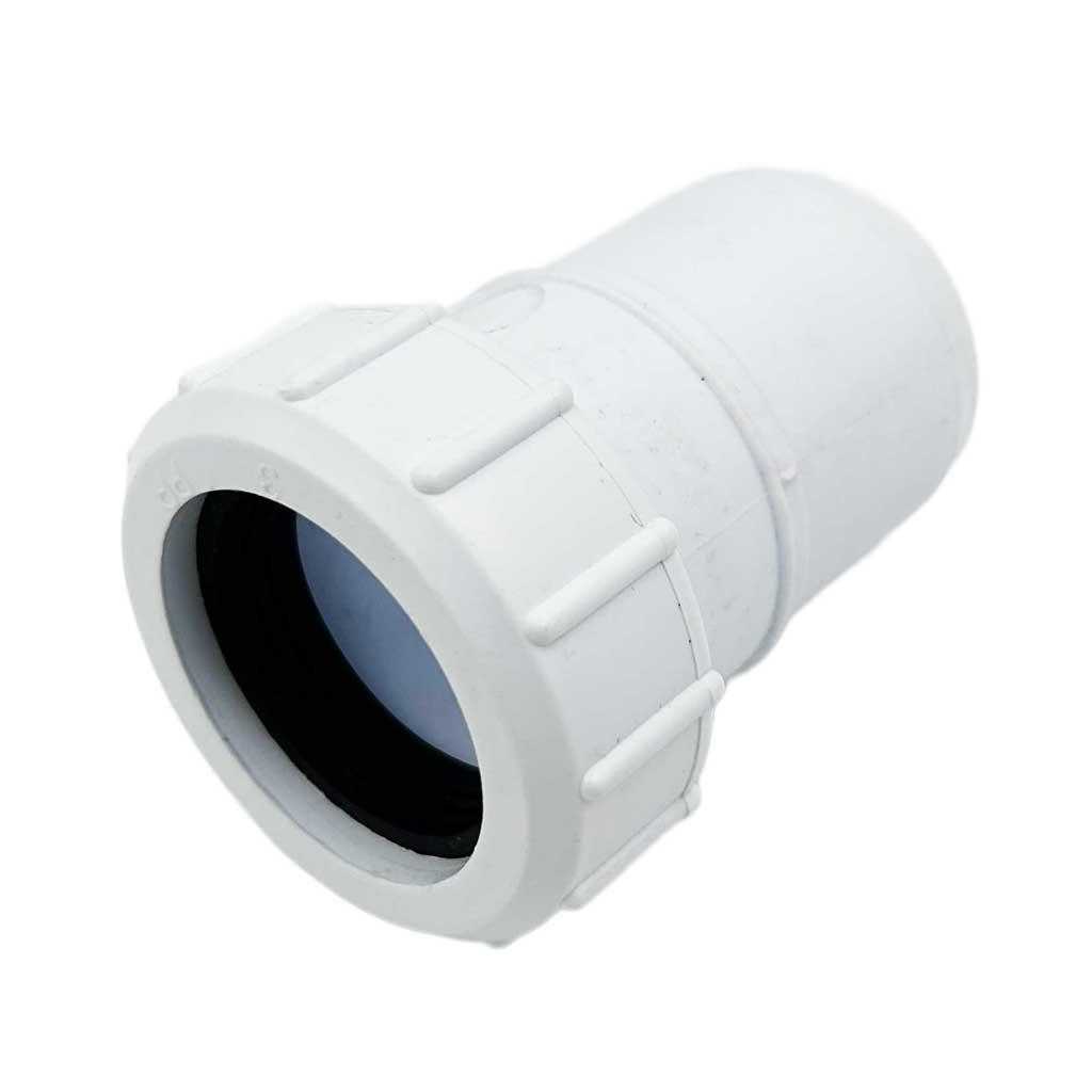 This waste pipe fitting with 40mm spigot connection on one end and 32mm compression socket on the other end will reduce the 40mm socket to 32mm one. It needs to be fitted to existing 40mm compression waste fitting and then it will create the same but 32mm one where 32mm waste pipe can be connected. This reducer is made from PVC and offers a fast and efficient solution for joining two 32mm waste pipe to 40mm fitting. It is designed with universal compression multi-fit fittings, ensuring compatibility with plastic, copper, and lead pipes. No solvent welding is needed, making installation quick and hassle-free. Ideal for both residential and commercial plumbing projects.