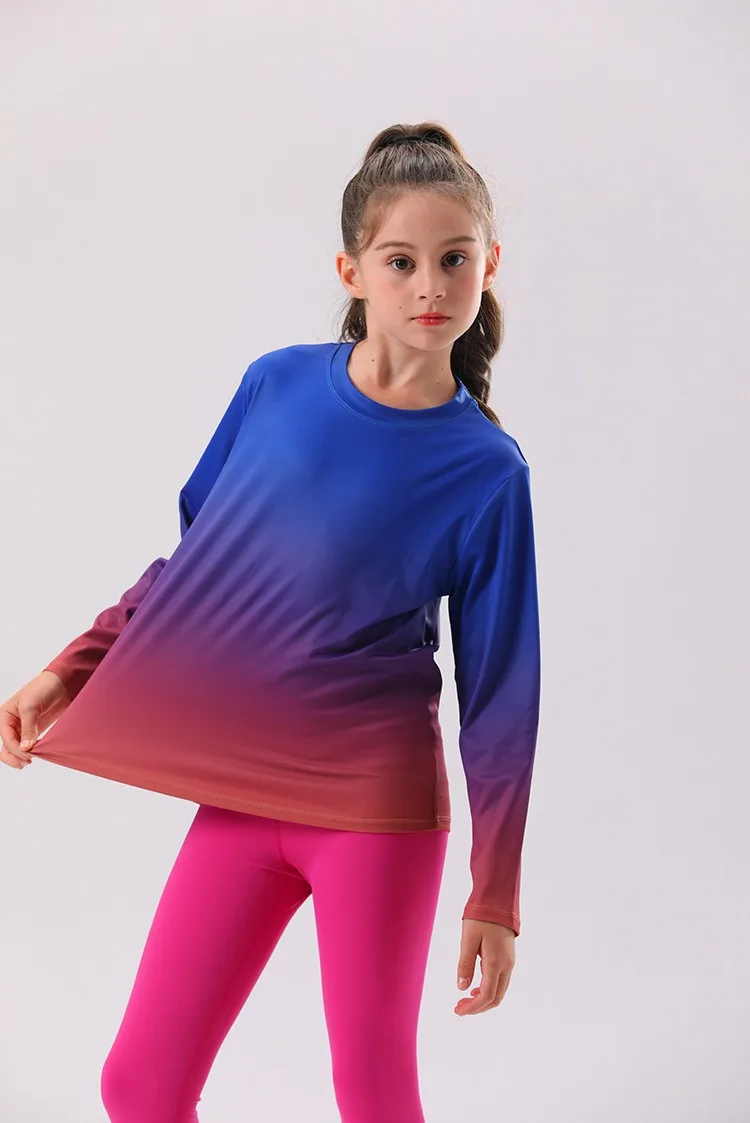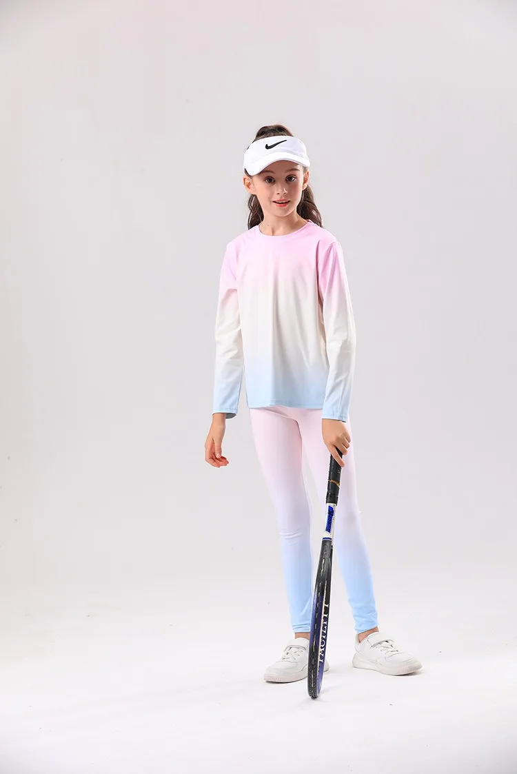 Girls Long Sleeve Shirts Tennis Children Yoga T-shirt Leisure Loose Kids Teens Sports Tees Quick Dry Athletic Fitness Clothes