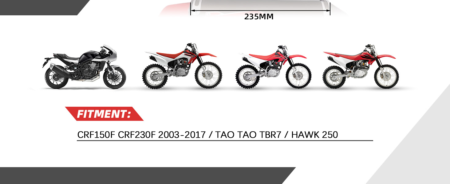 Features: [Fitment]: Dirt bike exhaust fits for CRF150F / CRF230F 2003-2013. [High Quality]: 100% brand new, never mounted. Attractive design decorated you bike into good looking. Pipe is made of 304 stainless steel, muffler is made of 6061-T6 aluminum. [Loud Sound]: The sound of the exhaust pipe is very loud, which can effectively enhance the sound of your motorcycle, make you more fun when riding, and attract people's attention. [Latest Look Muffler]: The red head of the exhaust pipe and the trendy pattern are very suitable for the CRF150F / CRF230F 2003-2013. Upgrade your motorcycle appearance and make your motorcycle look more handsome. [Special Note]: Please carefully check the applicable model and caliber of the exhaust pipe before purchasing. Professional installation recommended. You have to have some mechanical skills to get it to Install. Specification: Color: Red Fitment: For CRF230F 2003-2013 For CRF150F 2003-2013 Package Includes: One motorcycle pipe Instruction of installation is not included