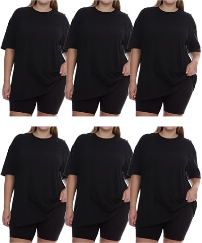 BILLIONHATS Womens Oversized Cotton T-Shirts, Crew Neck Short Sleeve Baggy Loose Tops Oversize Tees Color Black, Size 3X-Large (6 Pack) ![]() ![]() ![]() Product Description