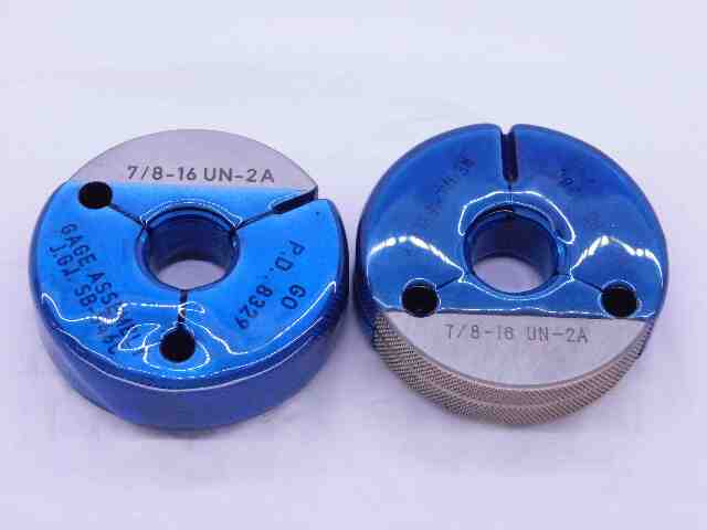 7/8 16 UN 2A THREAD RING GAGES .875 .8750 GO NO GO P.D.'S = .8329 & .8280 CHECK