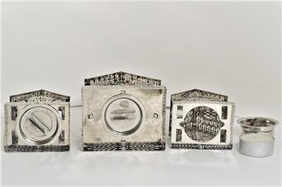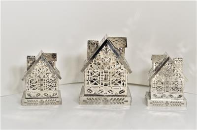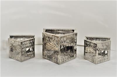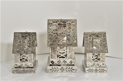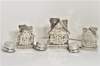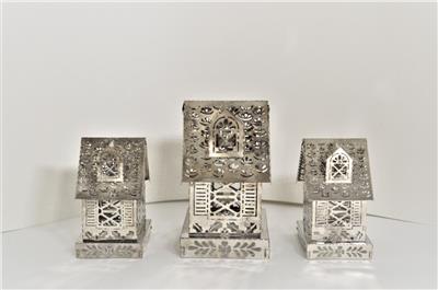Antique Vintage Pierced Thin Silver Tin Metal Tealight Candle Houses, candle and holders insert from the bottom