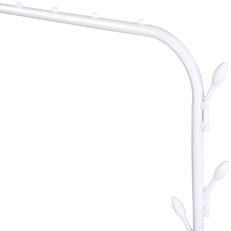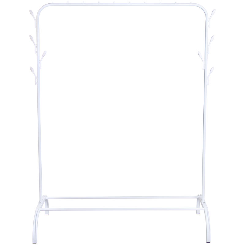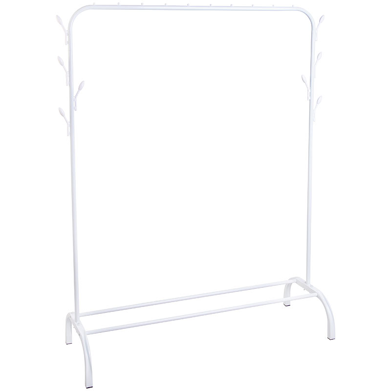 Minimalistische und stabile Konstruktion: Die robuste Metallstange hält auch viele schwere Kleidungsstücke sicher. Dank des klaren Designs in Weiß passt die freistehende Kleiderstange perfekt zu vielen Deko-Konzepten und lenkt den Blick auf Ihre schönen Kleider.