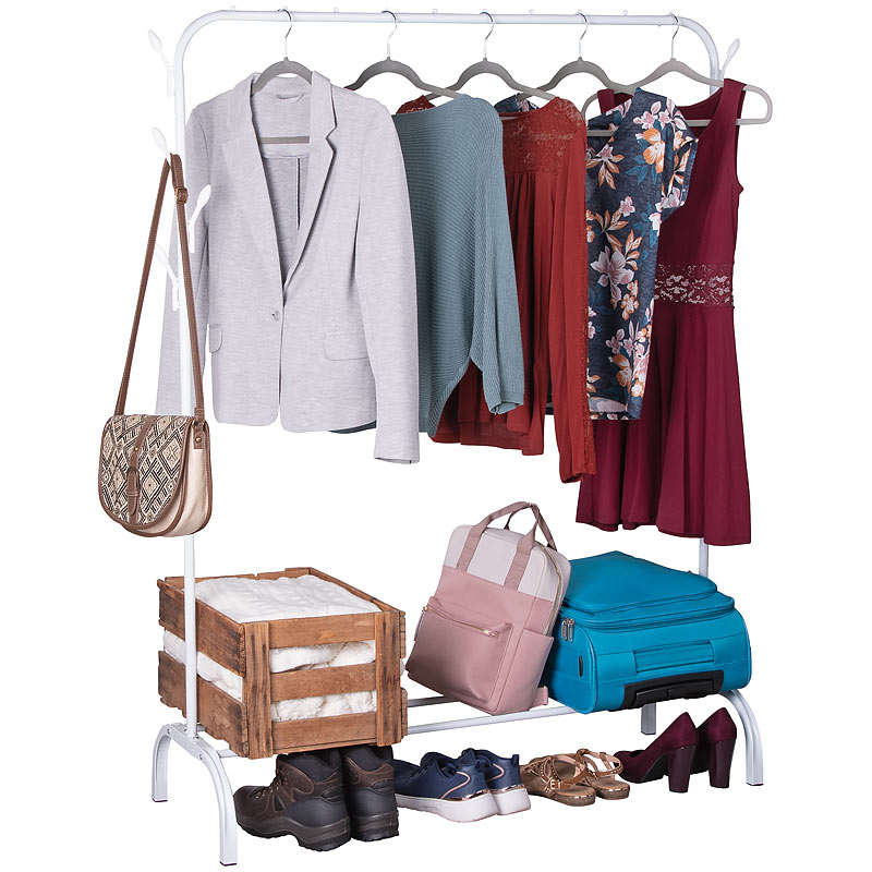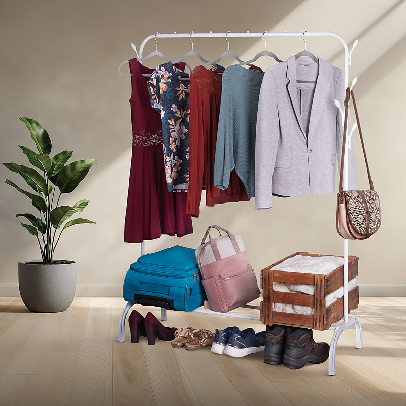 Ideal fürs Schlafzimmer und mehr: einfach aufstellen, wo Sie die Kleiderstange haben wollen, und Kleidung aufhängen. So machen Sie auch aus einer kleinen Kammer einen begehbaren Kleiderschrank - mit einer oder auch mehreren Kleiderstangen.