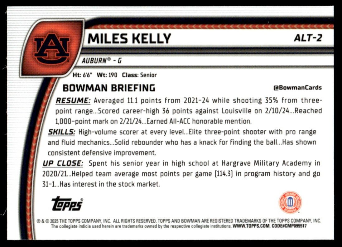 2025-26 Bowman Chrome U Miles Kelly Rookie #ALT-2