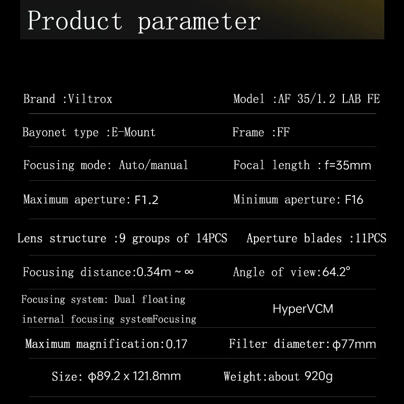 Viltrox Af 35Mm F1.2 Lab for Sony Fe Full Frame Large Aperture Automatic Lens Hypervcm Motor Hd Ultra Precision Aspherical Lens