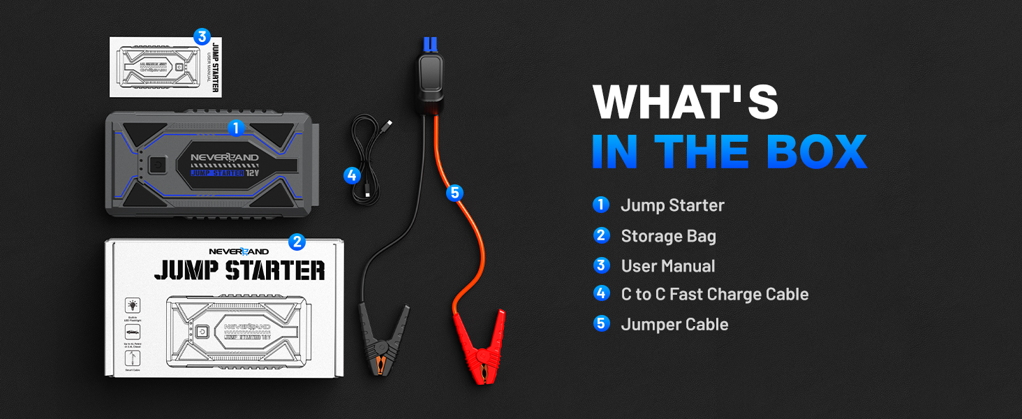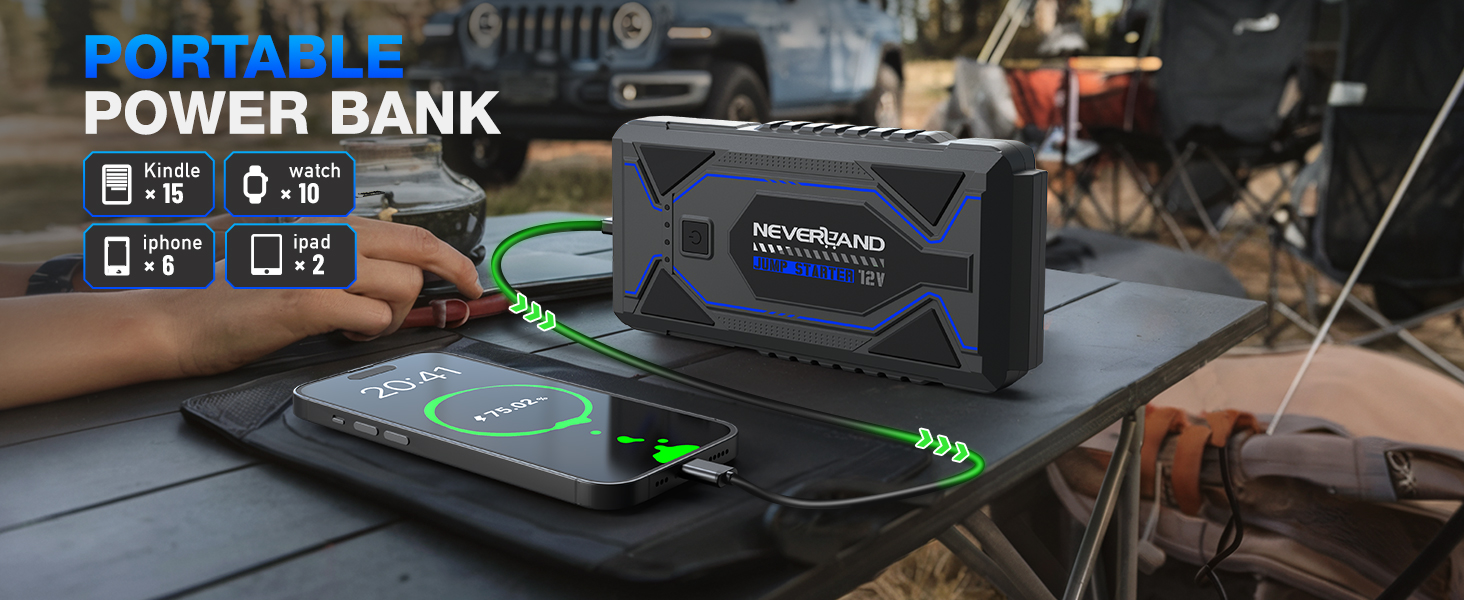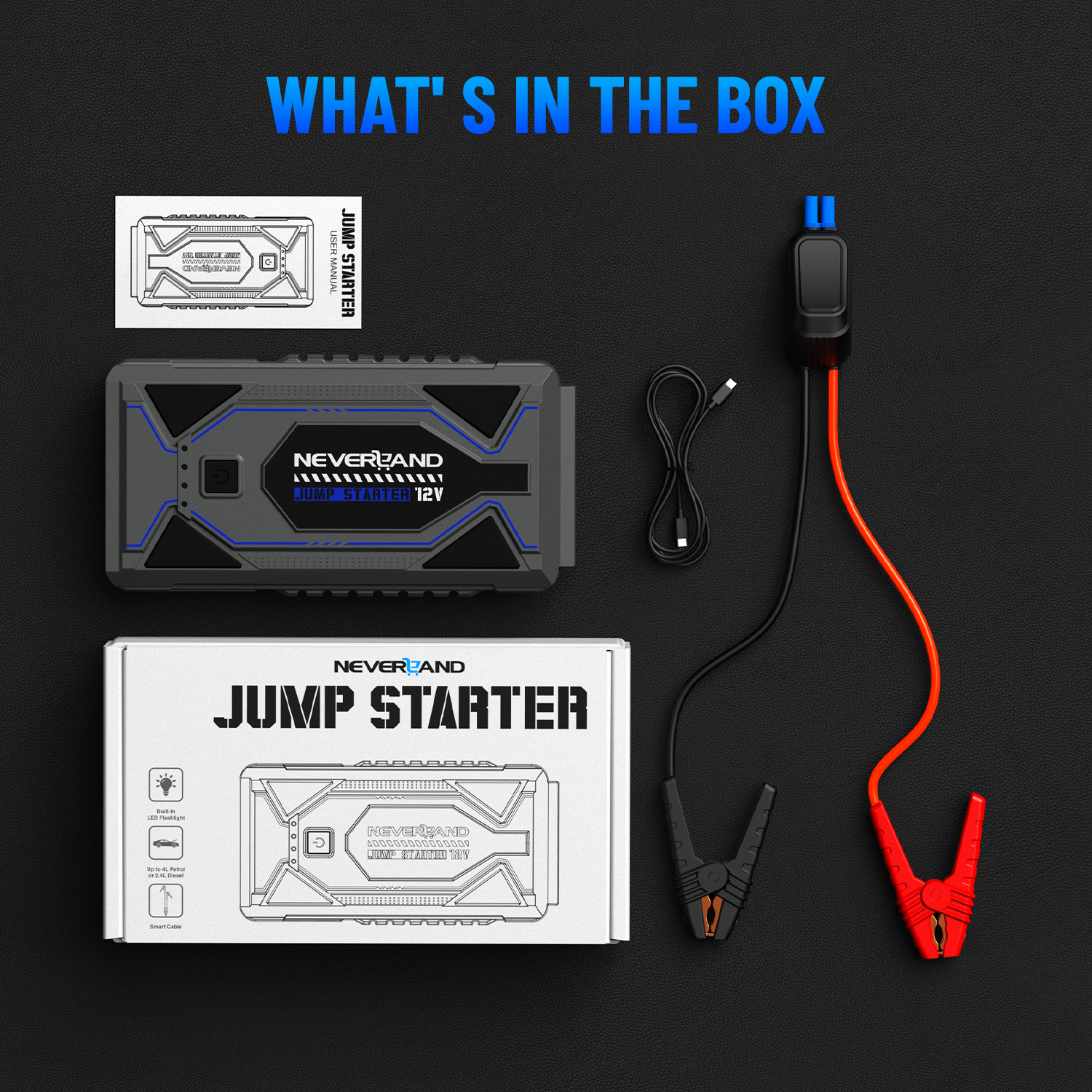 6-IN-1 Multi-Funktion Jump Starter --Auto-Starthilfe liefert bis zu 6000A Spitzenstrom, kann alle 12V Autos starten, wie Motorräder, ATVs, UTVs, Rasenmäher, Schneemobile, LKWs, Boote, Wohnmobile, Traktoren usw. in wenigen Minuten (für bis zu 10L Benzin oder 8L Diesel)