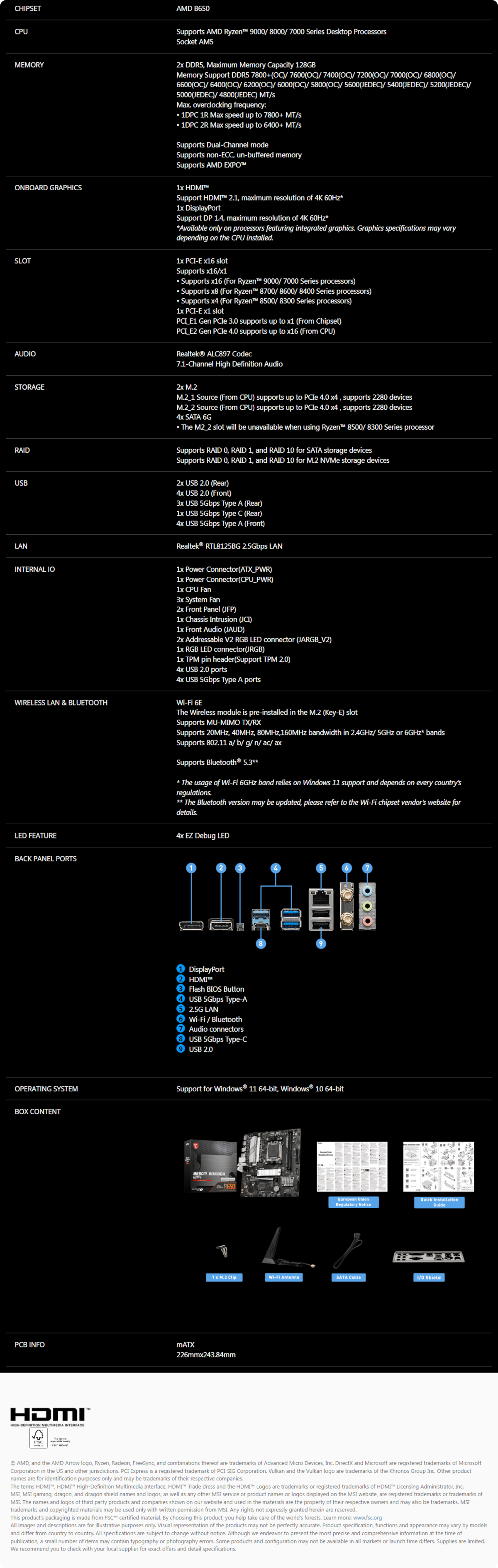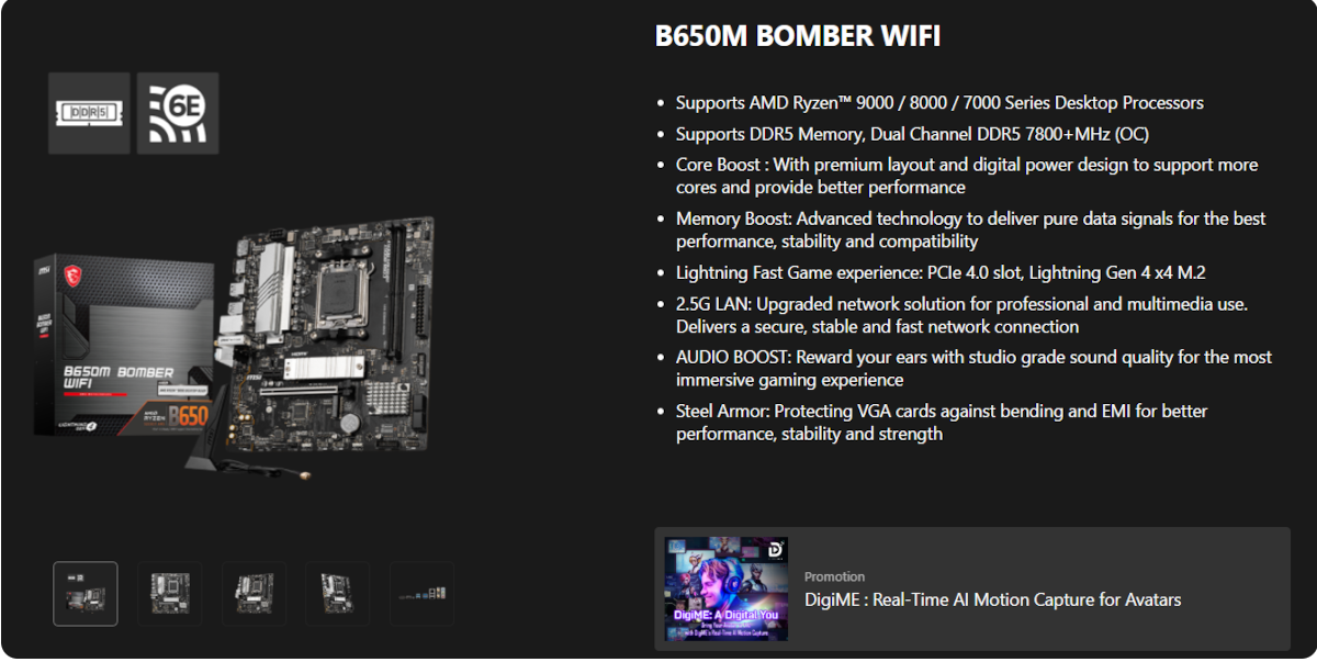 AMD Ryzen 5 7600 6C 12T CPU + MSI B650M BOMBER WIFI AMD WiFi 6E mATX Motherboard