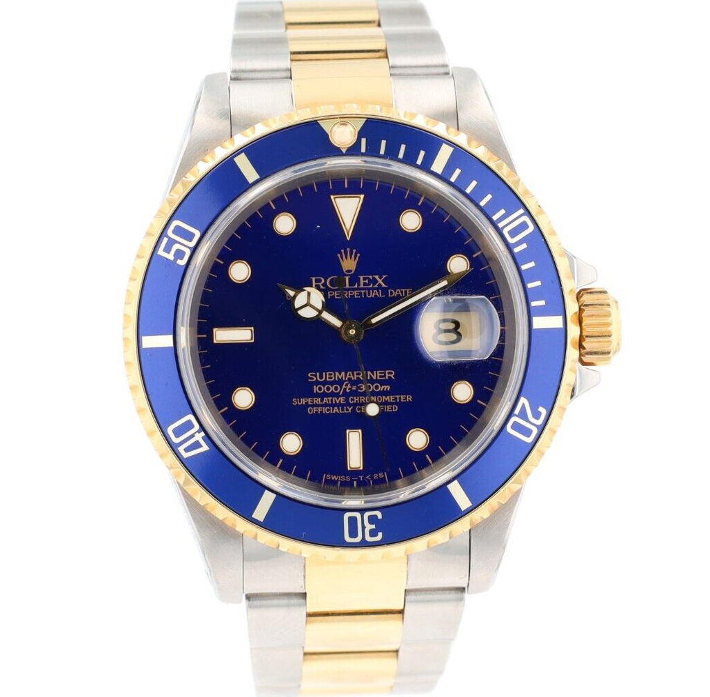 BEZEL: Original Rolex 18K Yellow Gold Rotating Bezel with Blue Insert
