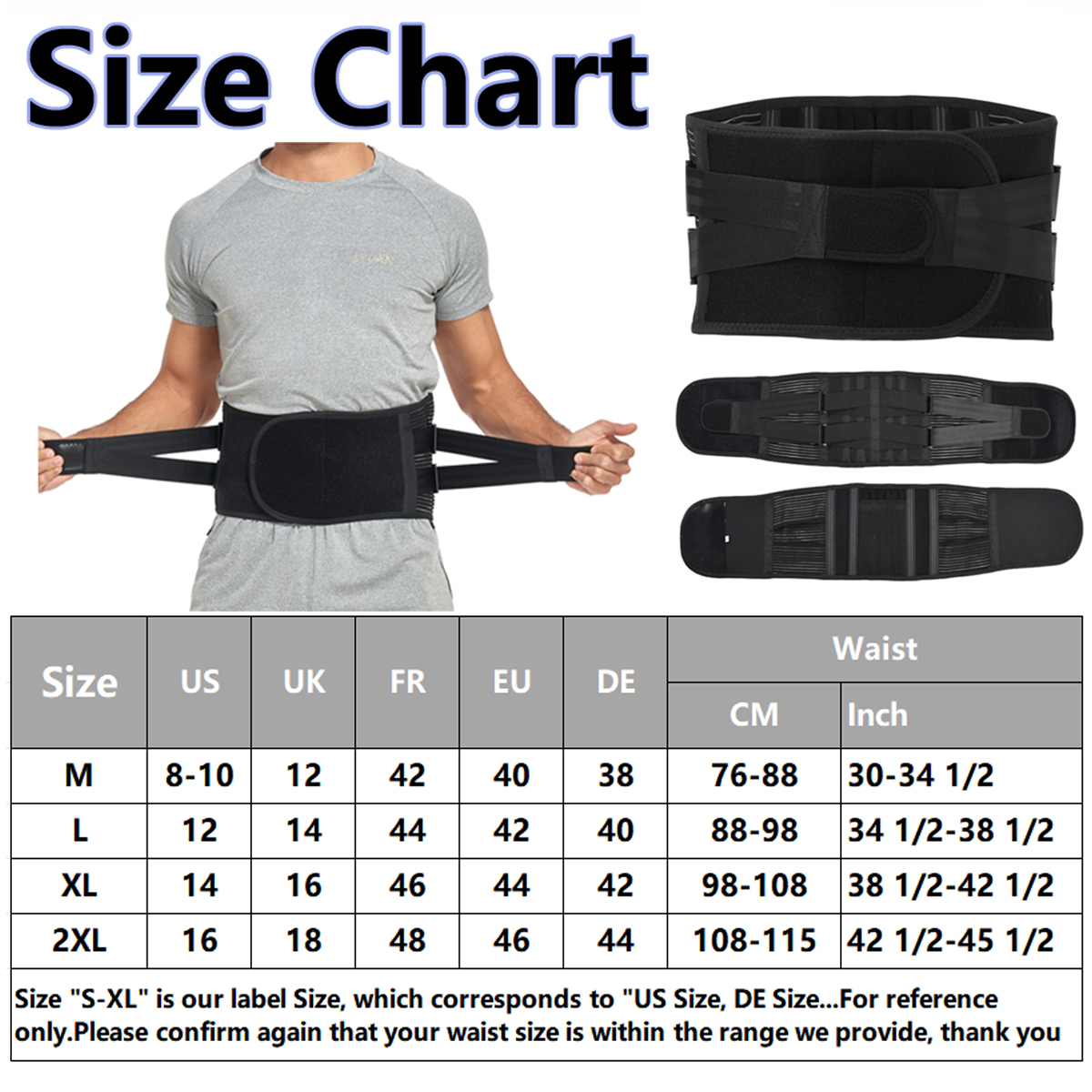 【PREVENT BACK INJURIES】Back support with 2 elastic straps are designed to add extra compression around lower back to prevent back injuries from weight lifting, long time standing or sitting, doing housework, working, etc. Relief waist muscles ache, disc herniation, sciatica, scoliosis etc when wearing the back belt.