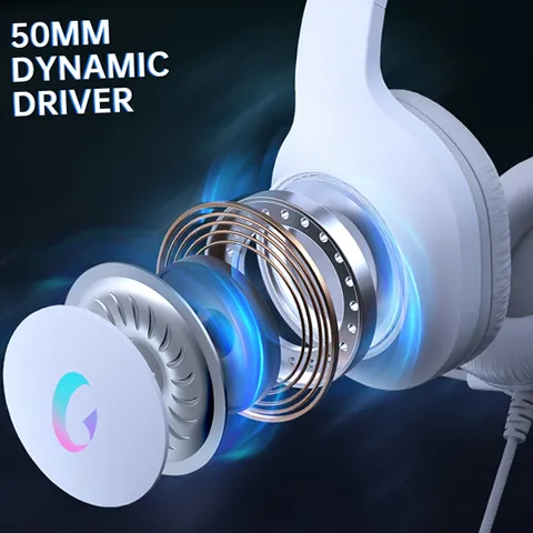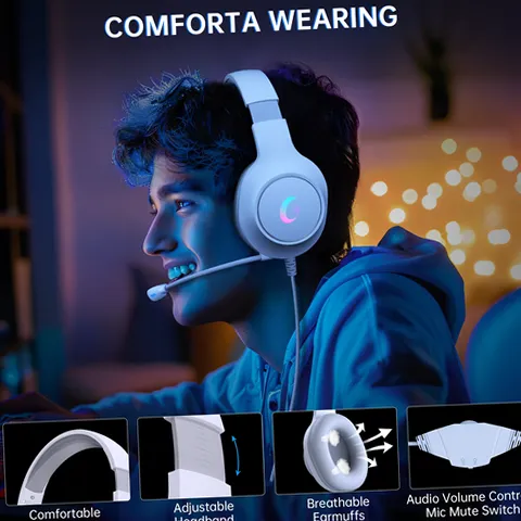 Ecomoment Wired Over-Ear Gaming Headphones with LED Light & 7.1 Surround Sound, White - Ergonomic Design