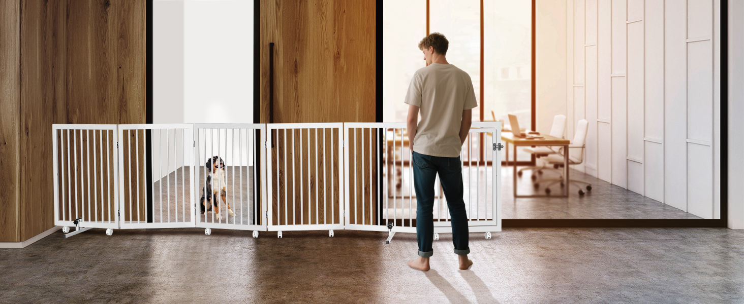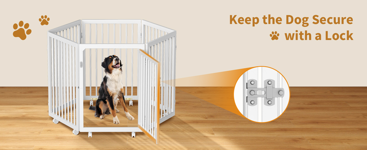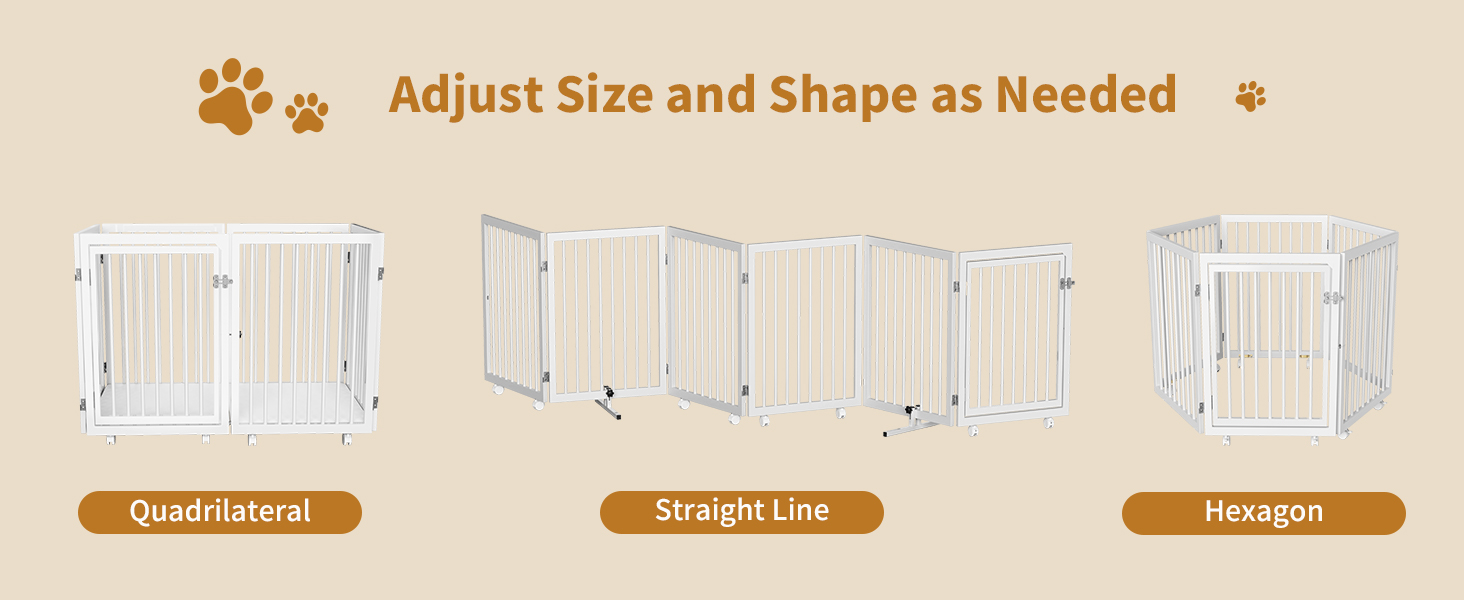 This 6-panel pet playpen features 360° rotating hinges, allowing you to configure it in multiple shapes (hexagon, rectangle, etc.) to fit any space. The 30" tall panels keep pets secure, while the 16" wide door (20" high) ensures easy access. Perfect for puppies, kittens, rabbits, and small animals!