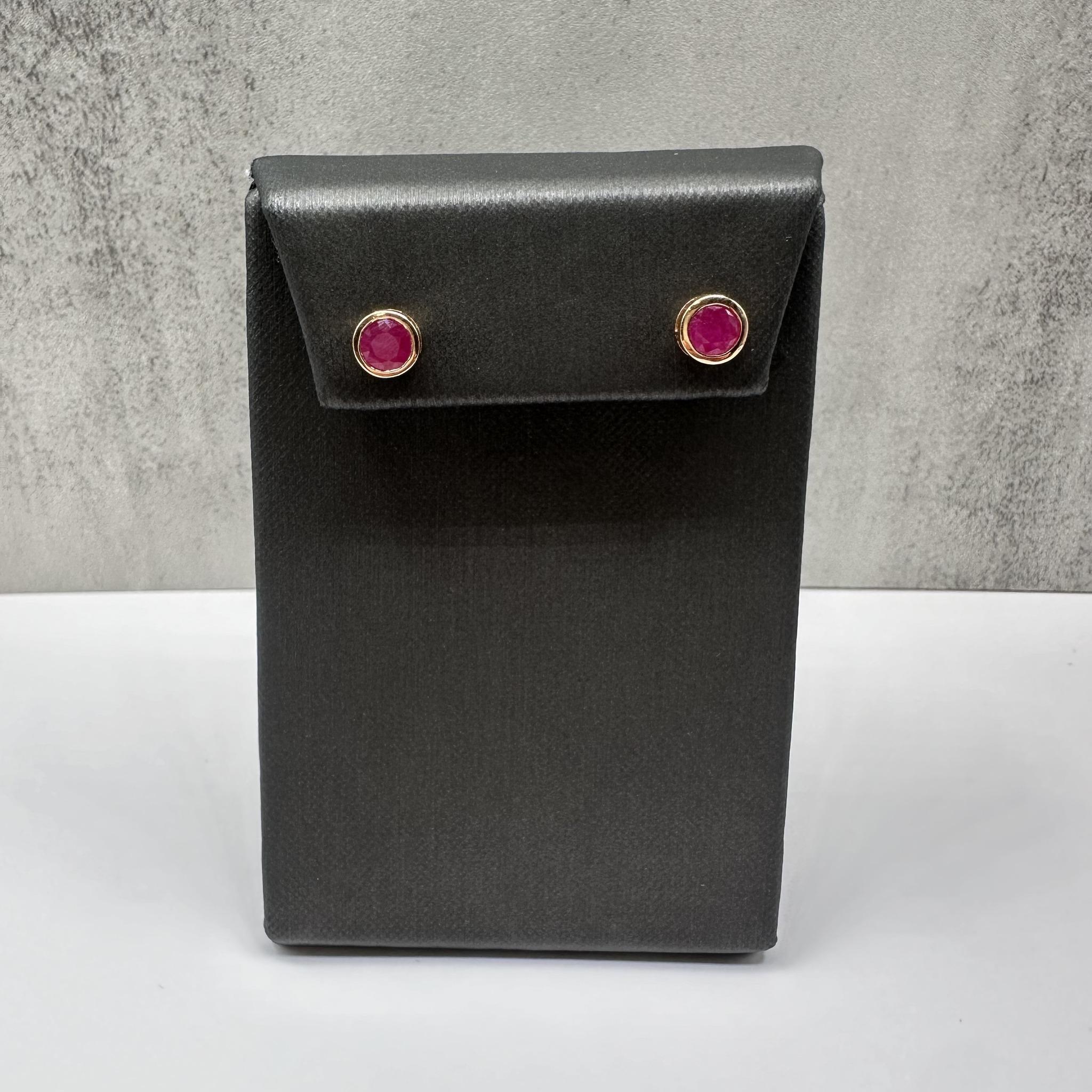 Elevate your jewelry collection with these stunning Designer Effy Ruby Studs, crafted in luxurious 18kt Rose Gold. Featuring 1.14 carat total weight (ctw) of vibrant round rubies in a sleek bezel setting, these earrings are a perfect blend of elegance and modern style. Weighing 1.8 grams, these lightweight studs are designed with secure push backs, offering comfort and ease of wear. Brand new with tags, these ruby studs have a retail price of $1,874.