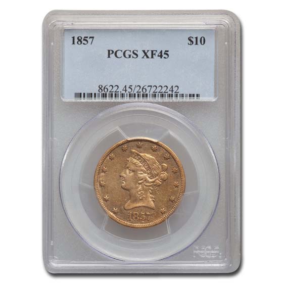 1857 $10 Liberty Gold Eagle XF-45 PCGS
