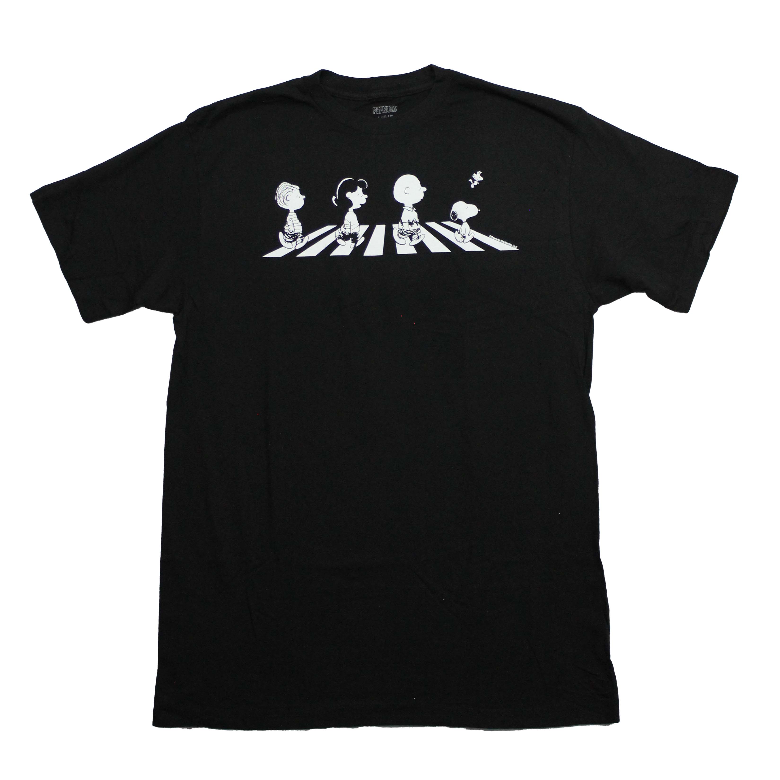 Peanuts New Adult T-Shirt - Black & White Snoopy and the Gang Crossing Abbey