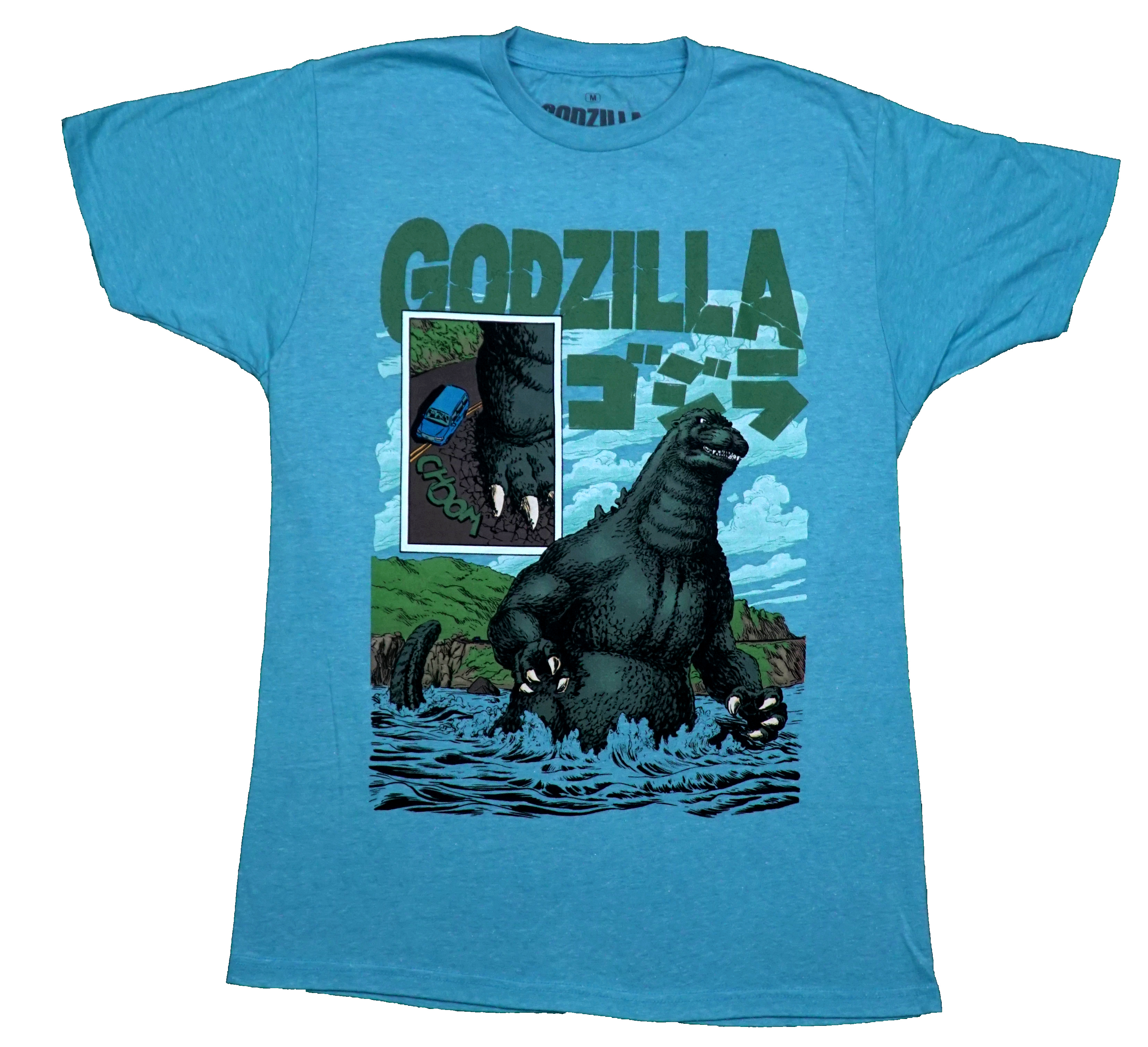 This blue tee is perfect for fans of Godzilla.