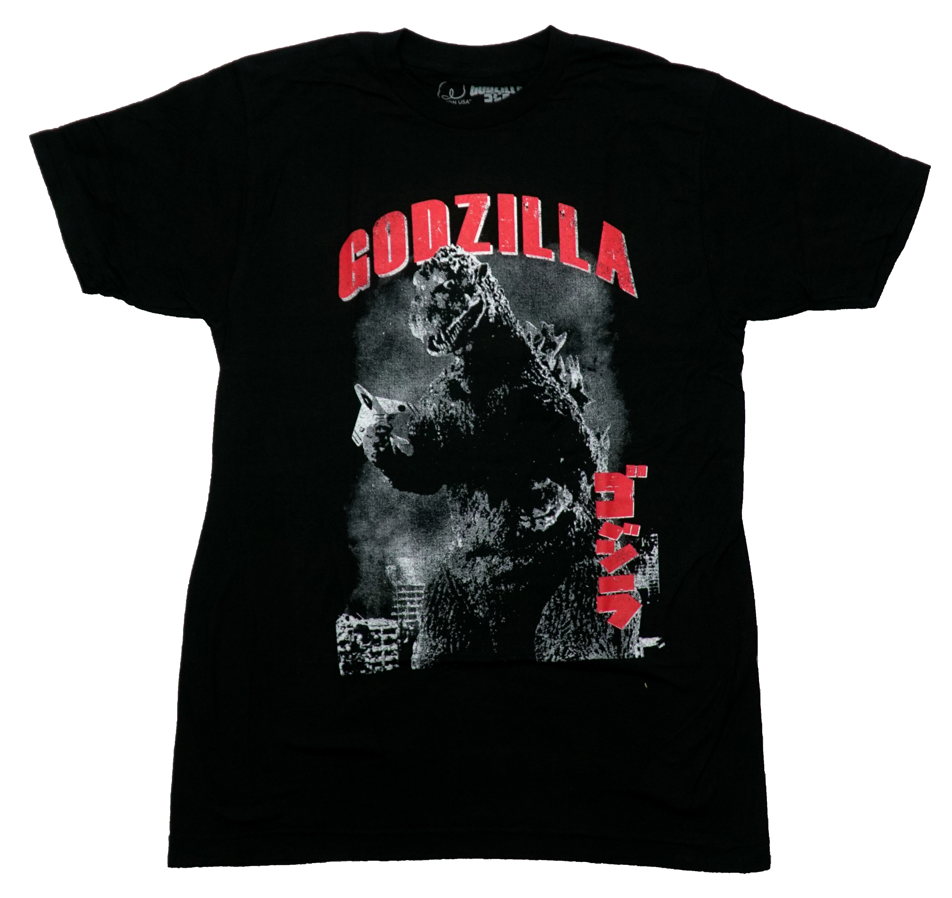 Godzilla New Adult T-Shirt - Black & White Classic Destruction Under Red Title