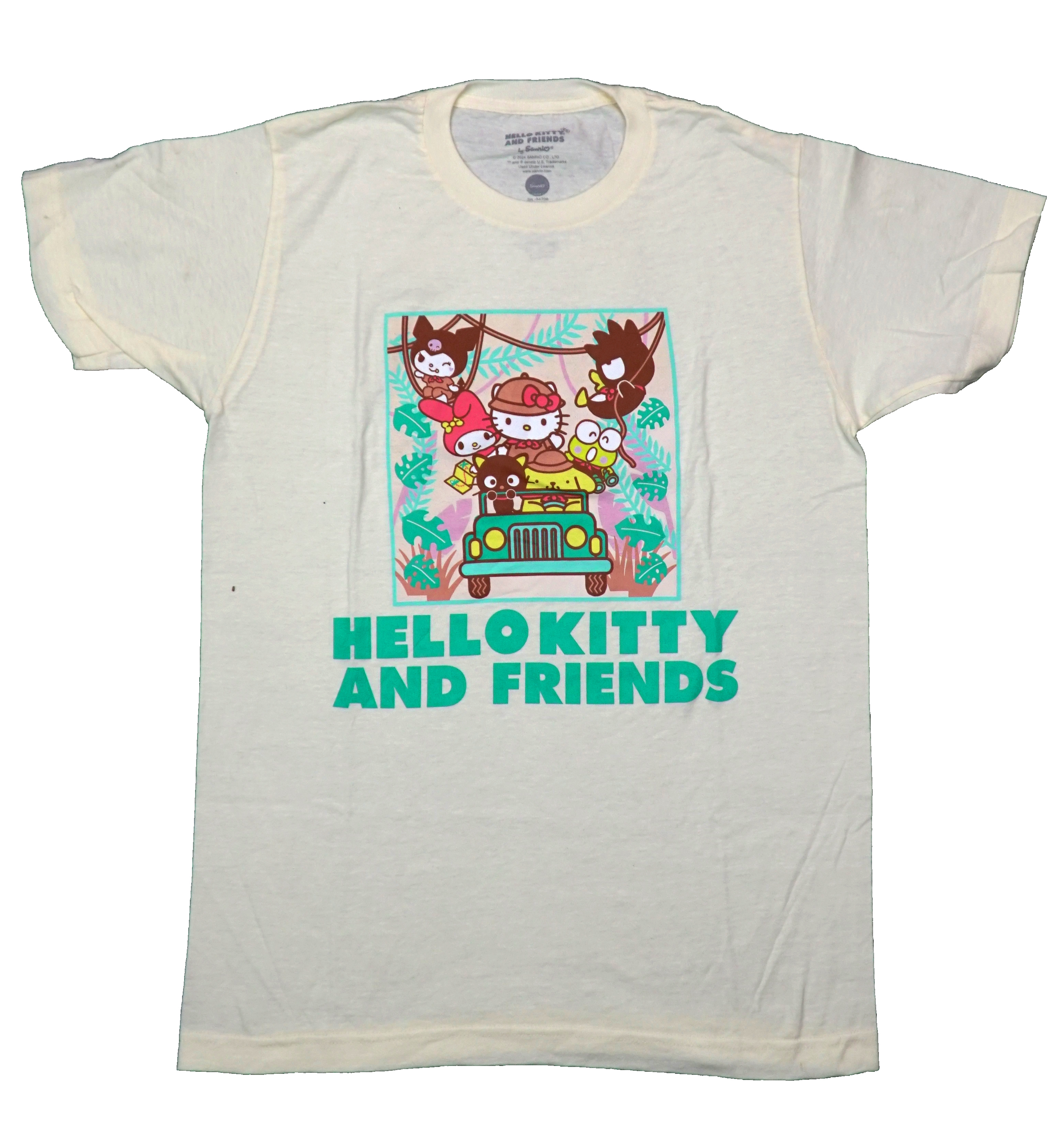Hello Kitty and Friends New Adult T-Shirt - Riding in Jeep Swinging on Vines