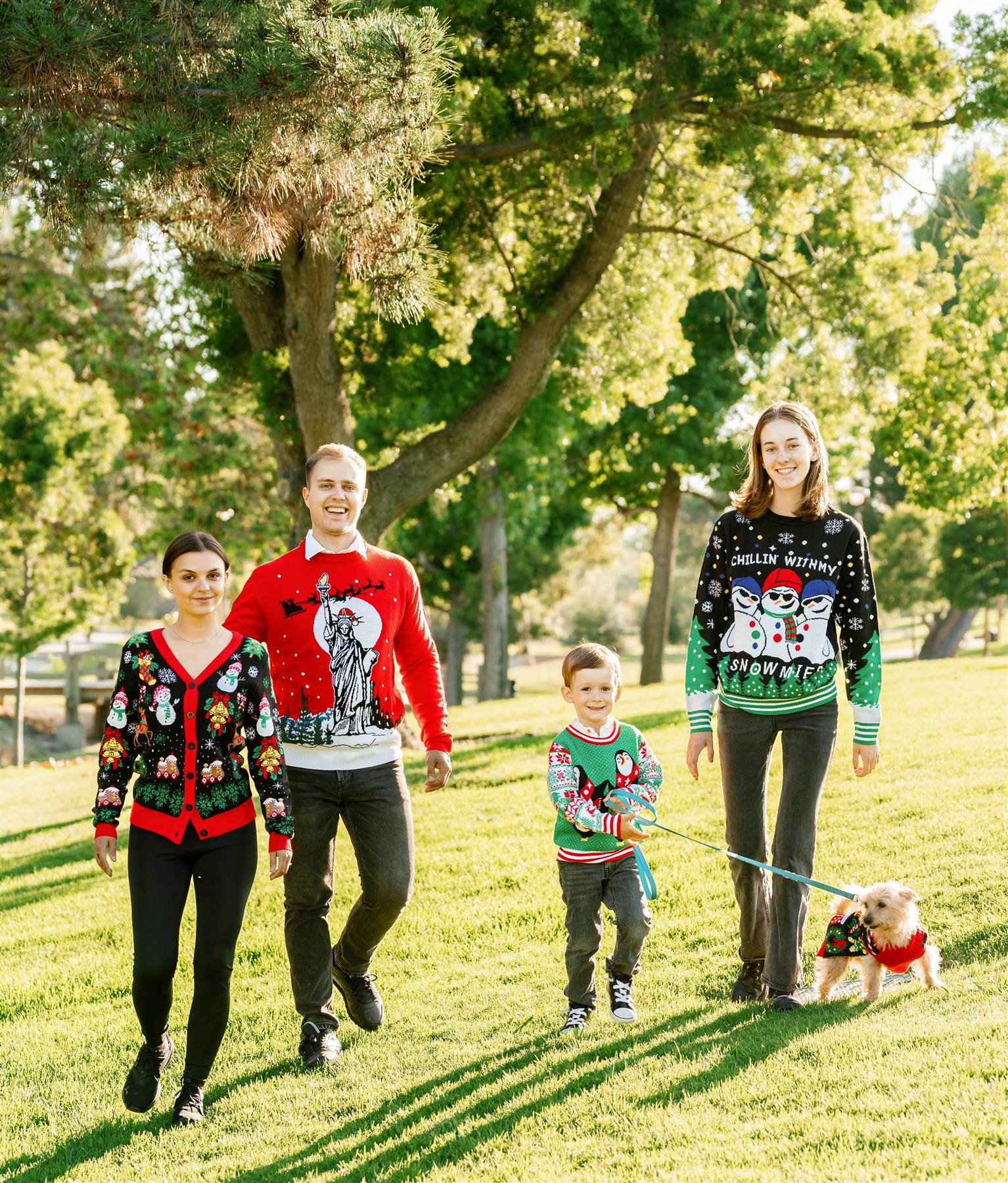 - High-Quality Knit: Made from premium acrylic with a fine jacquard knit, this sweater features delightful holiday designs on the front and sleeves, while the back remains plain