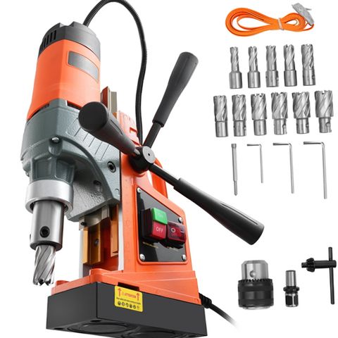 The SKYSHALO 1450W Portable Magnetic Drill is engineered for efficiency and precision in metalworking. This electromagnetic drilling machine boasts a clamping force of 12500N, allowing it to securely attach to any steel surface for accurate positioning and burr-free drilling. With a powerful motor rated at 1450 watts, it achieves a maximum core diameter of 1.57 inches (40 mm) and a travel distance of up to 8.66 inches (220 mm). The integrated cooling system enhances the drill's performance by extending the life of the drill bits and milling cutters while preventing overheating. Designed with user comfort in mind, it features an ergonomic handle and multiple crank handles for easy operation. This versatile tool is perfect for various applications including steel structure work, shipbuilding, bridge construction, and more.