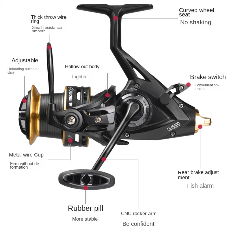 3: 4+1 stainless steel bearings, stainless steel guide rods, brass spindle, zinc alloy gear discs, bringing more powerful power