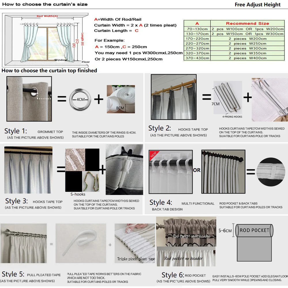 2.The width of the curtain should be 2 times the width of the curtain rod/rail.