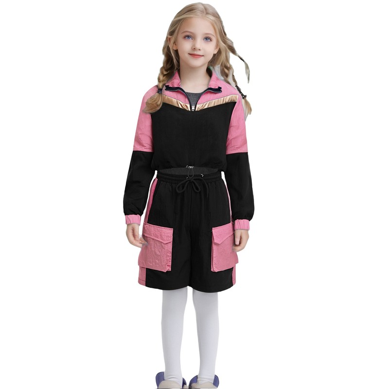 Kids girls sports set is featured with color block patchwork to make your child look stylish and energetic.